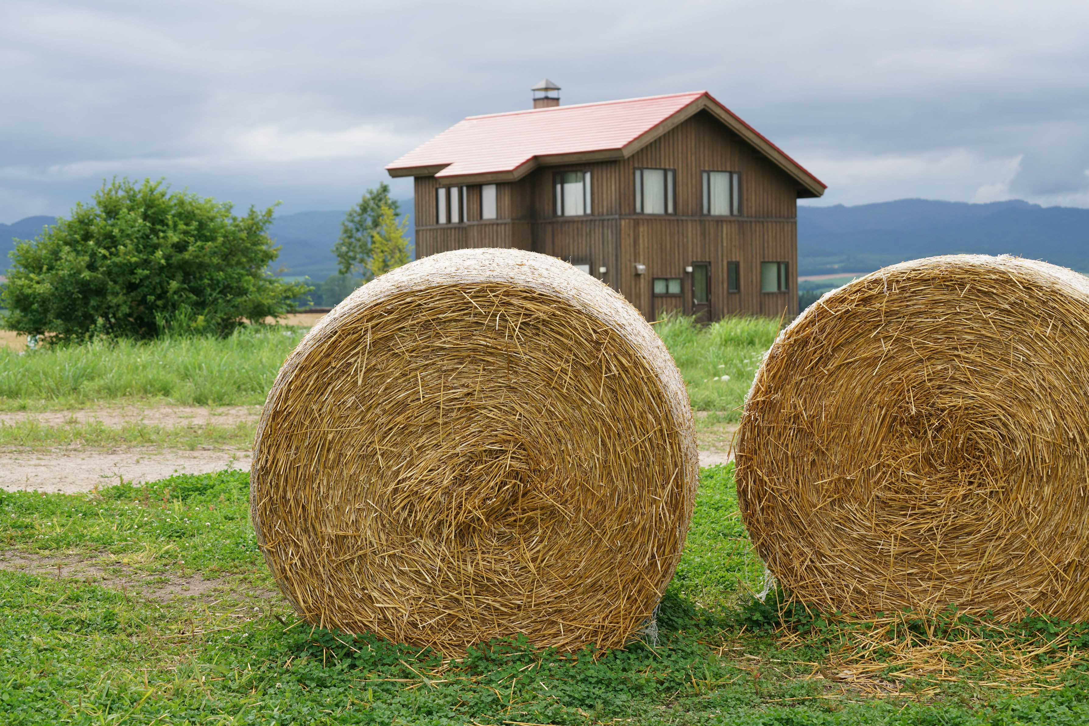 商業的に置いてあった牧草ロールですが 青空がほしかったですね。