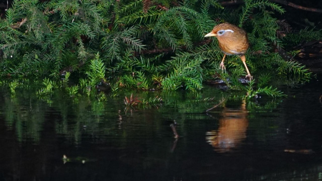 小さな池にやって来る我眉鳥