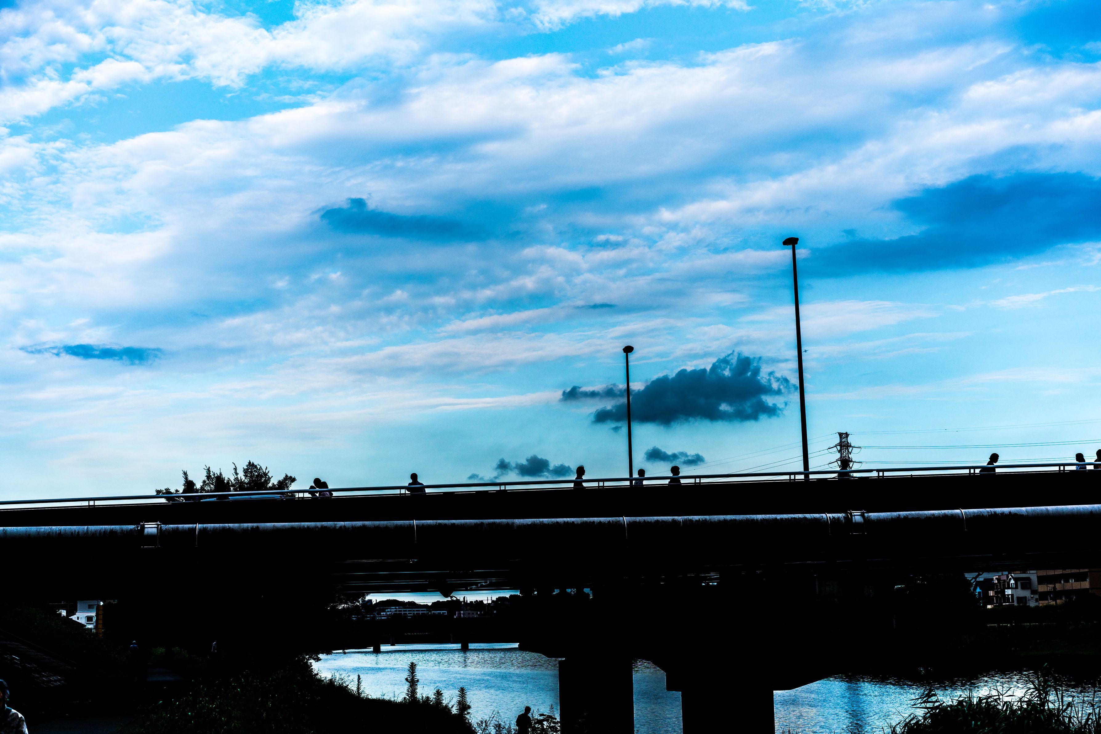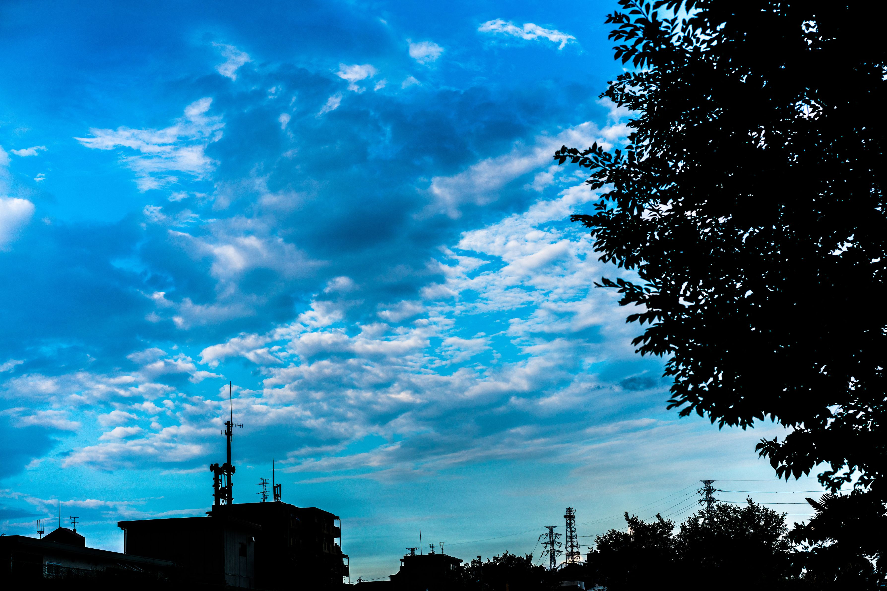 厚い雲、薄い雲、千切れ雲、積乱雲、色んな雲が一緒に浮いてます。