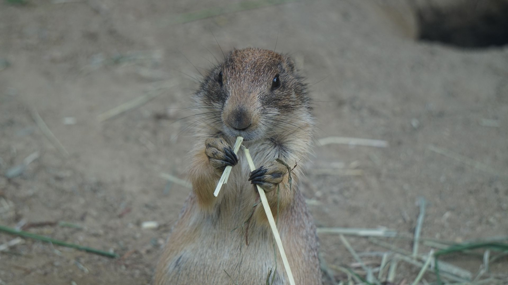 器用に両手で茎を千切って食べています