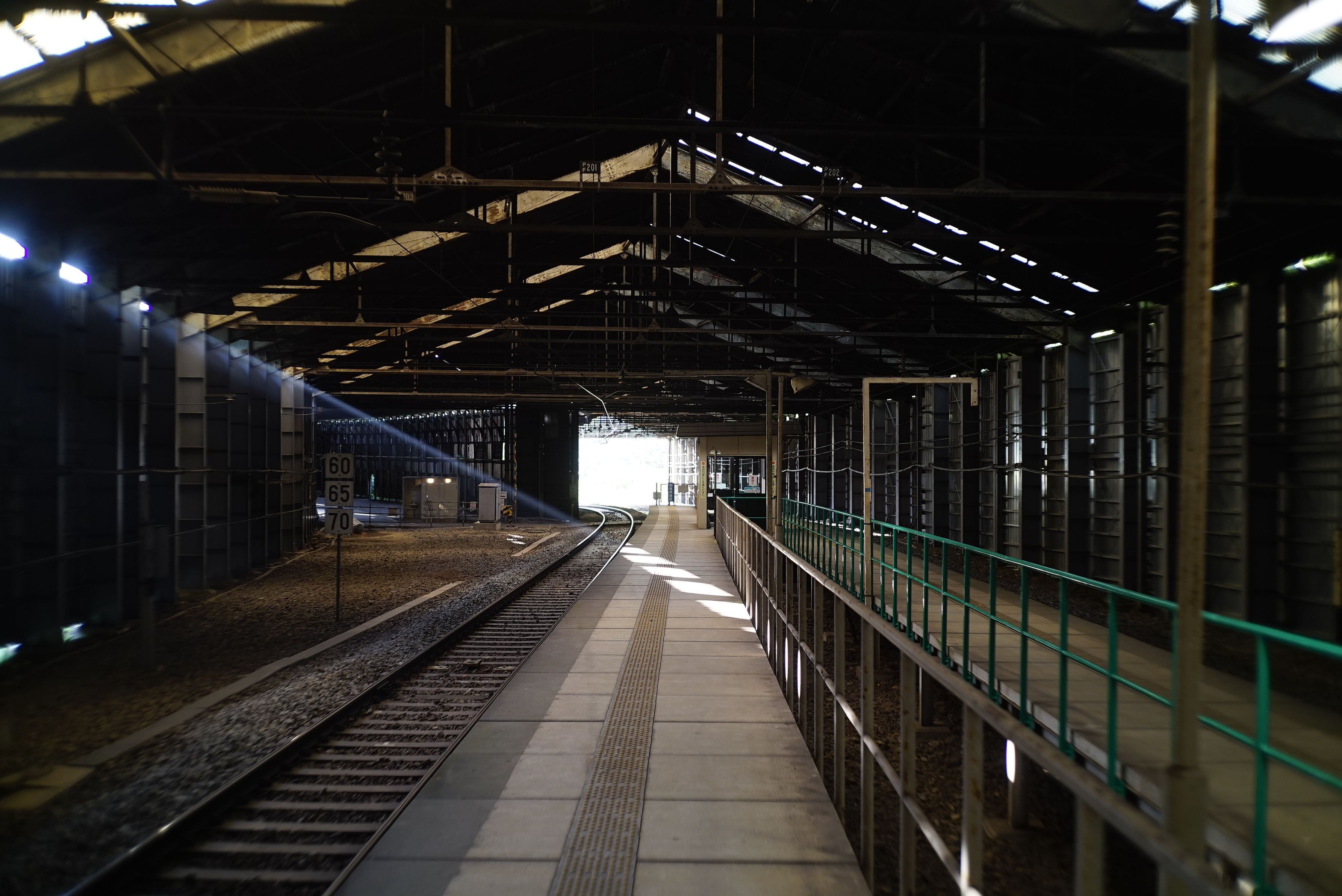 日に数本しか列車が止まらない秘境駅にも関わらず、スノーシェルターのおかげで海外の終着駅のような堂々たる雰囲気になっているのが面白い。 Biogon 35mm F2.8