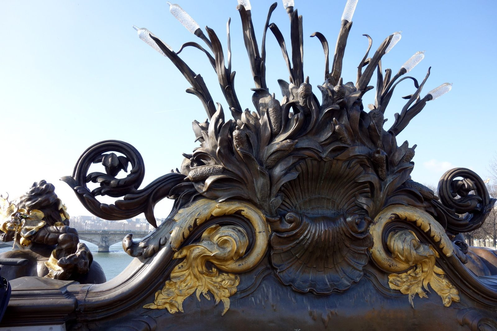 アレクサンドル3世橋 橋の欄干のオブジェ さすが芸術の都ですね 何をイメージしたのかなぁ・・・? ・・・=^_^=