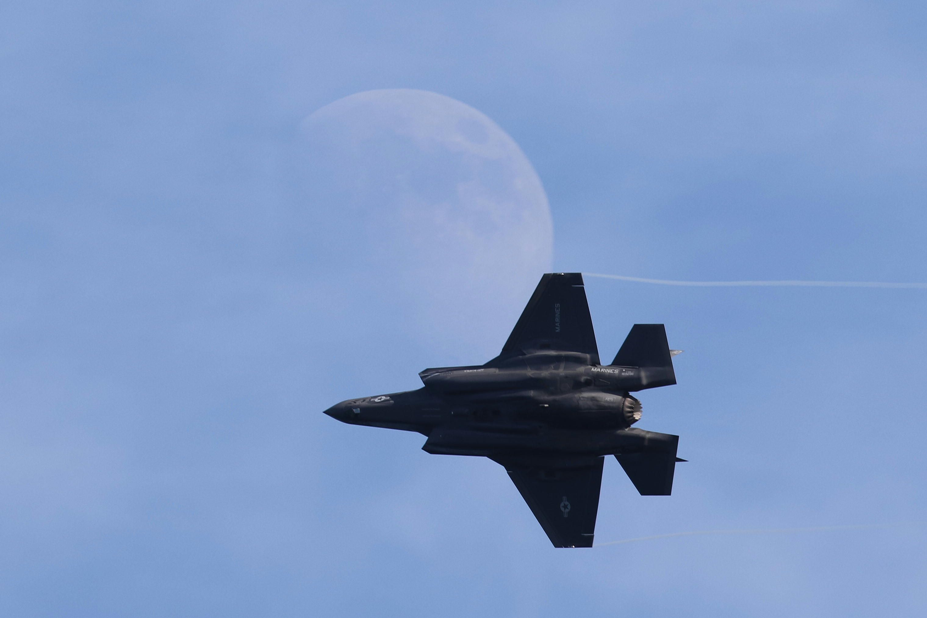 狙っていた月と35うまく入った。薄雲のかかった月だったが