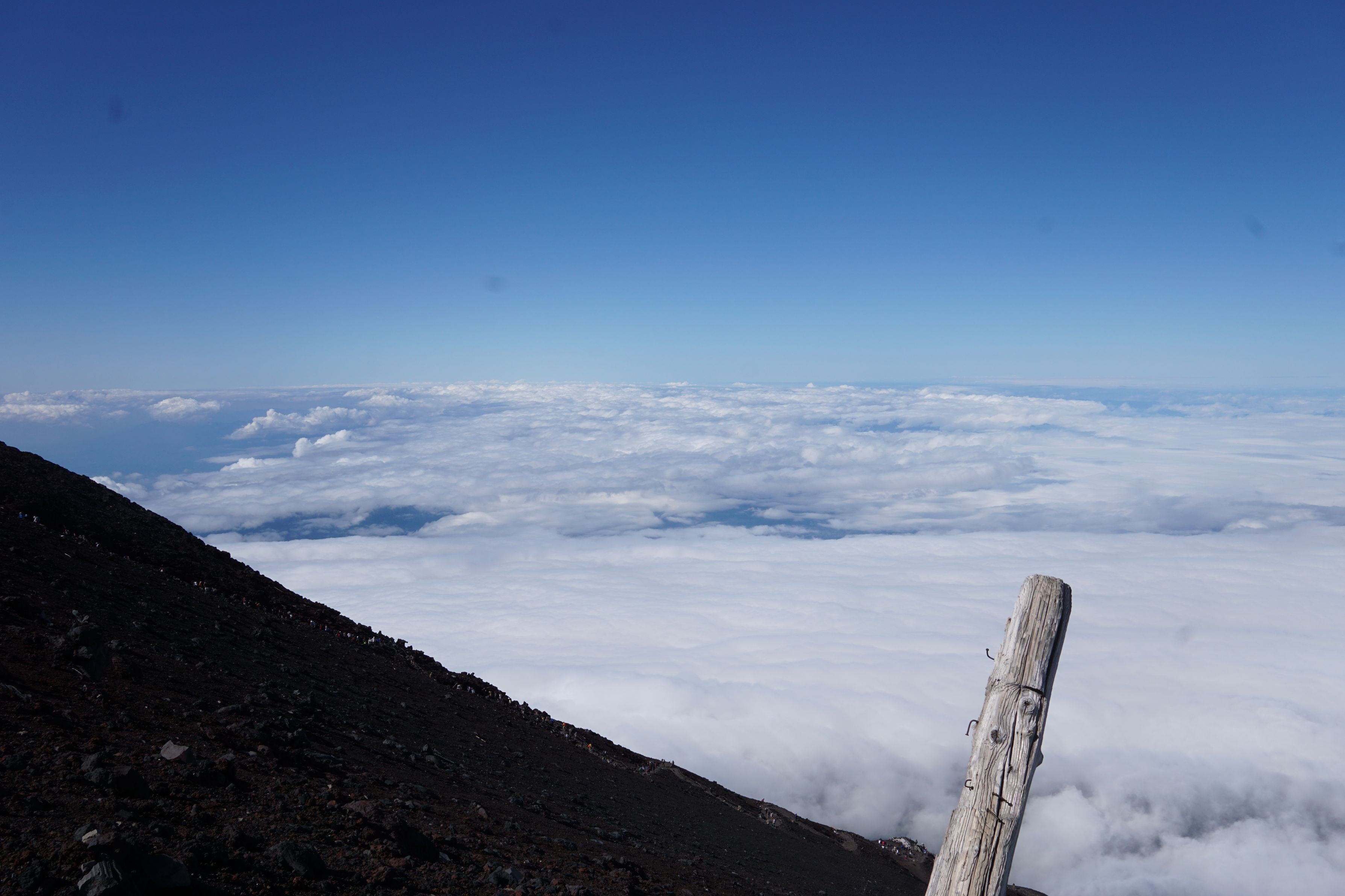 下山道からの雲海。 まだまだ沢山の方が山頂を目指しています。