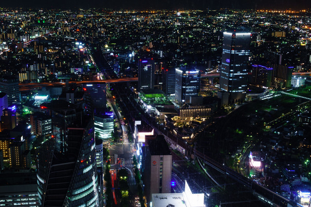 名古屋駅間近の展望施設スカイプロムナードからの名古屋近郊の夜景です。