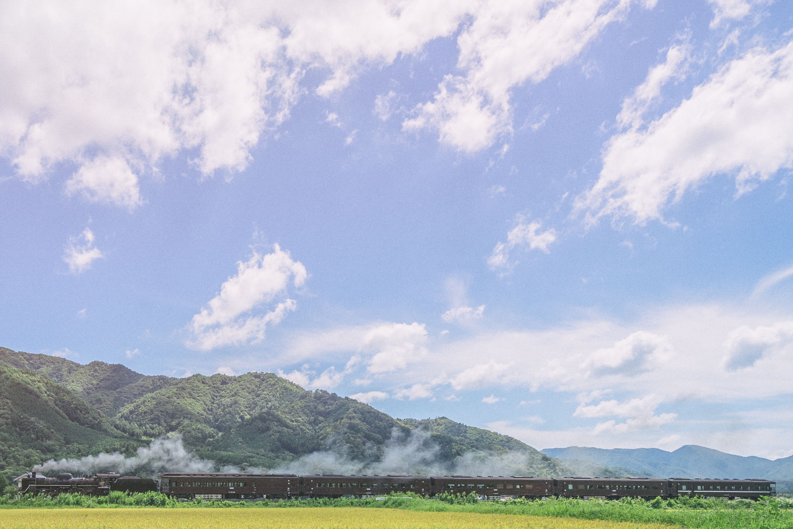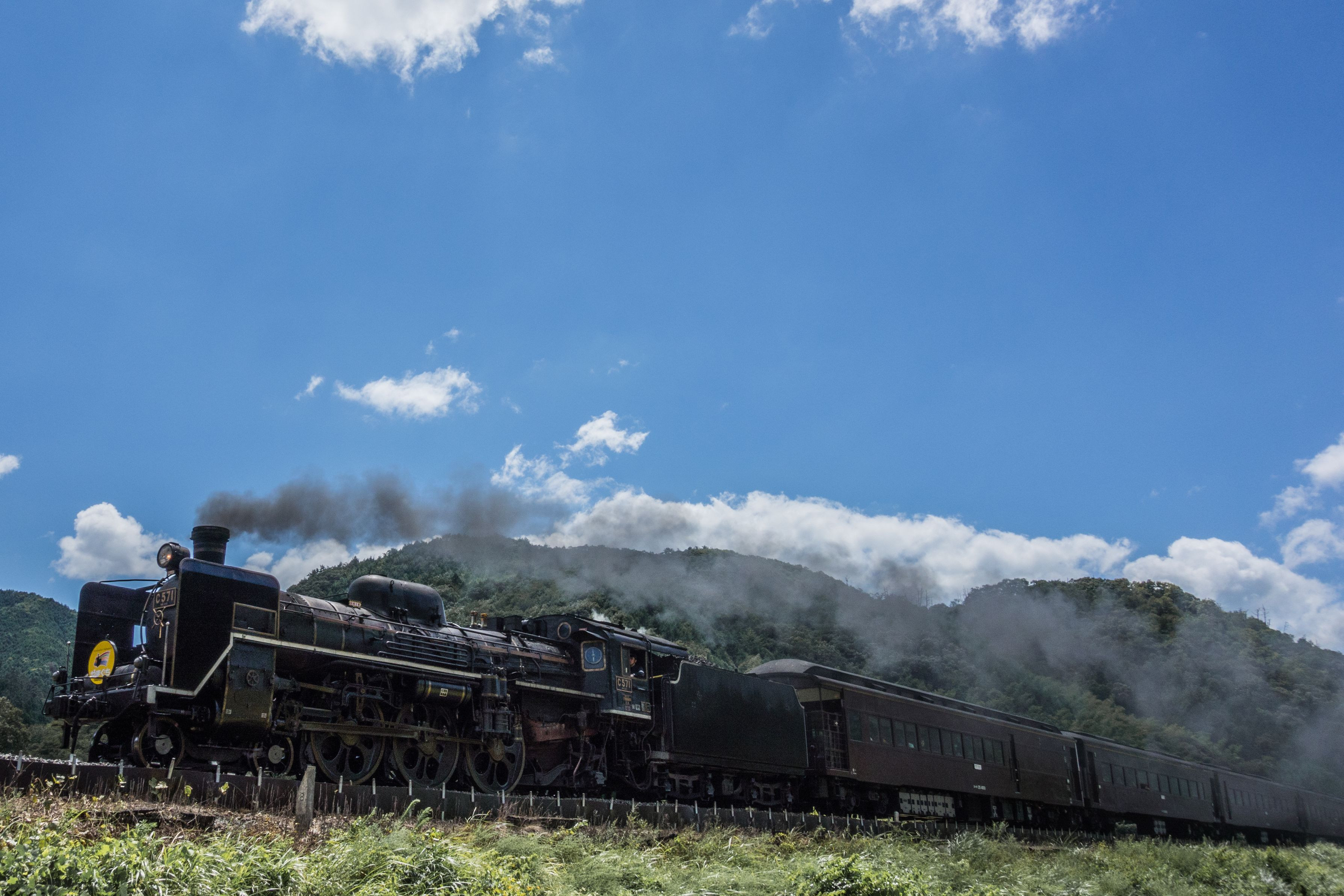 9月2日でSLやまぐち号の客車が新旧で交代しました。 新客車になってももちろん撮らせていただきます。 望遠レンズ持っていないので、トリミングしまくりです。ごめんなさい。