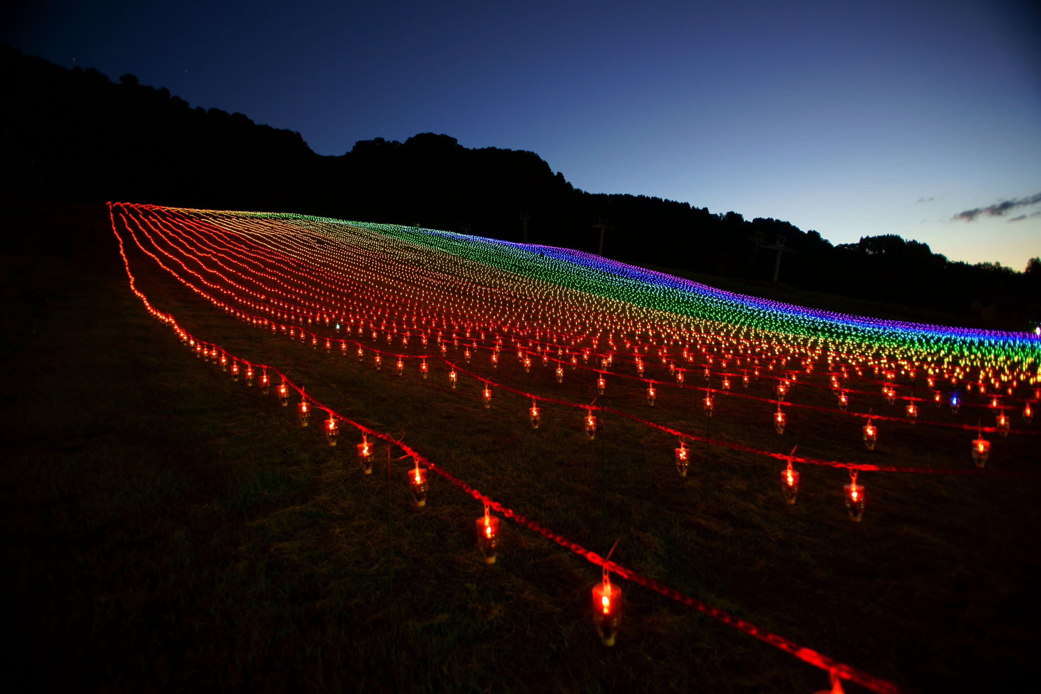 白山開山1300年を記念して 加賀禅定道の中間地点にある 白山一里野温泉スキー場に イルミネーションが広がっていました。 10月中旬まで行われているそうです。 (^▽^)/