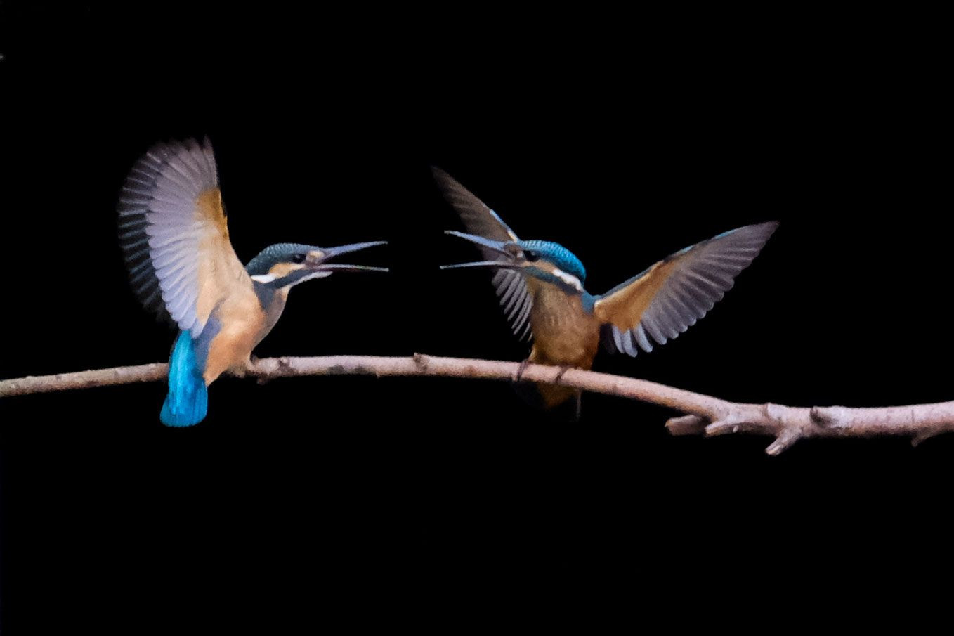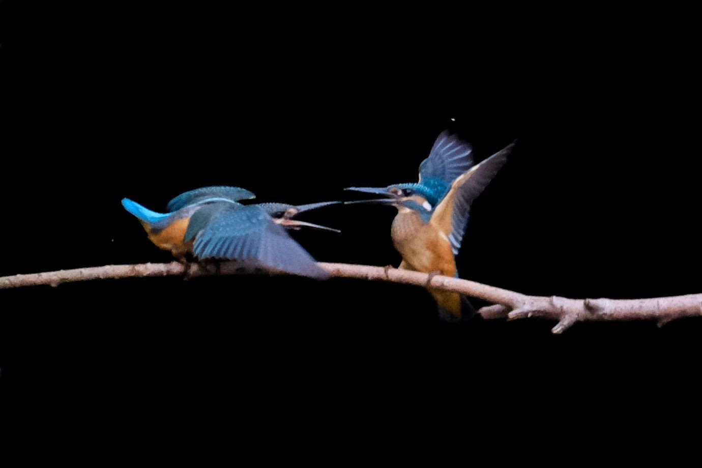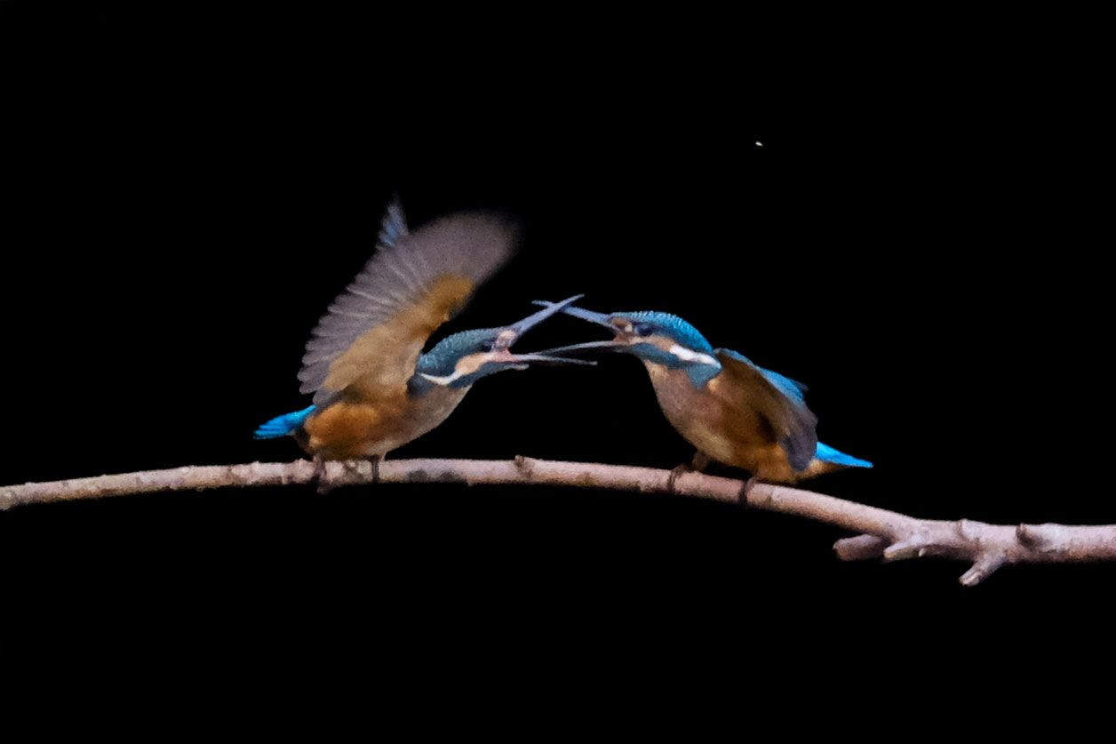 左が3番子。右が2番子。 兄弟喧嘩をするときもあれば仲良くするときもあります。 あとひと月もしないうちに別れ離れ。 カワセミの掟です。