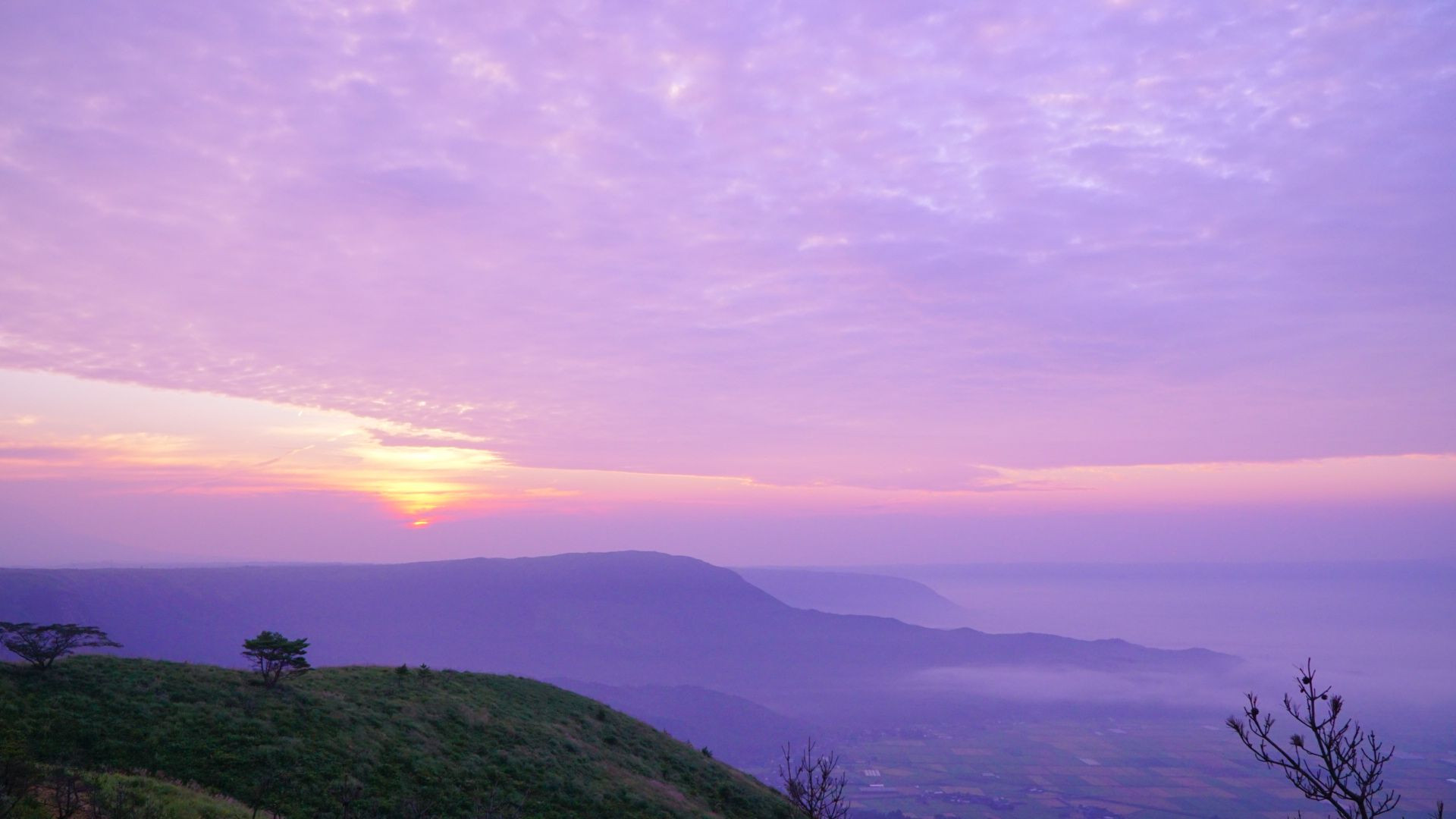熊本県阿蘇の菊地スカイライン展望所 絶景駐車場からのプチ雲海と夜明け。 今日の朝活は福岡県久留米市から日田、小国町経由にて熊本県阿蘇へ雲海を撮影に行って来ました。