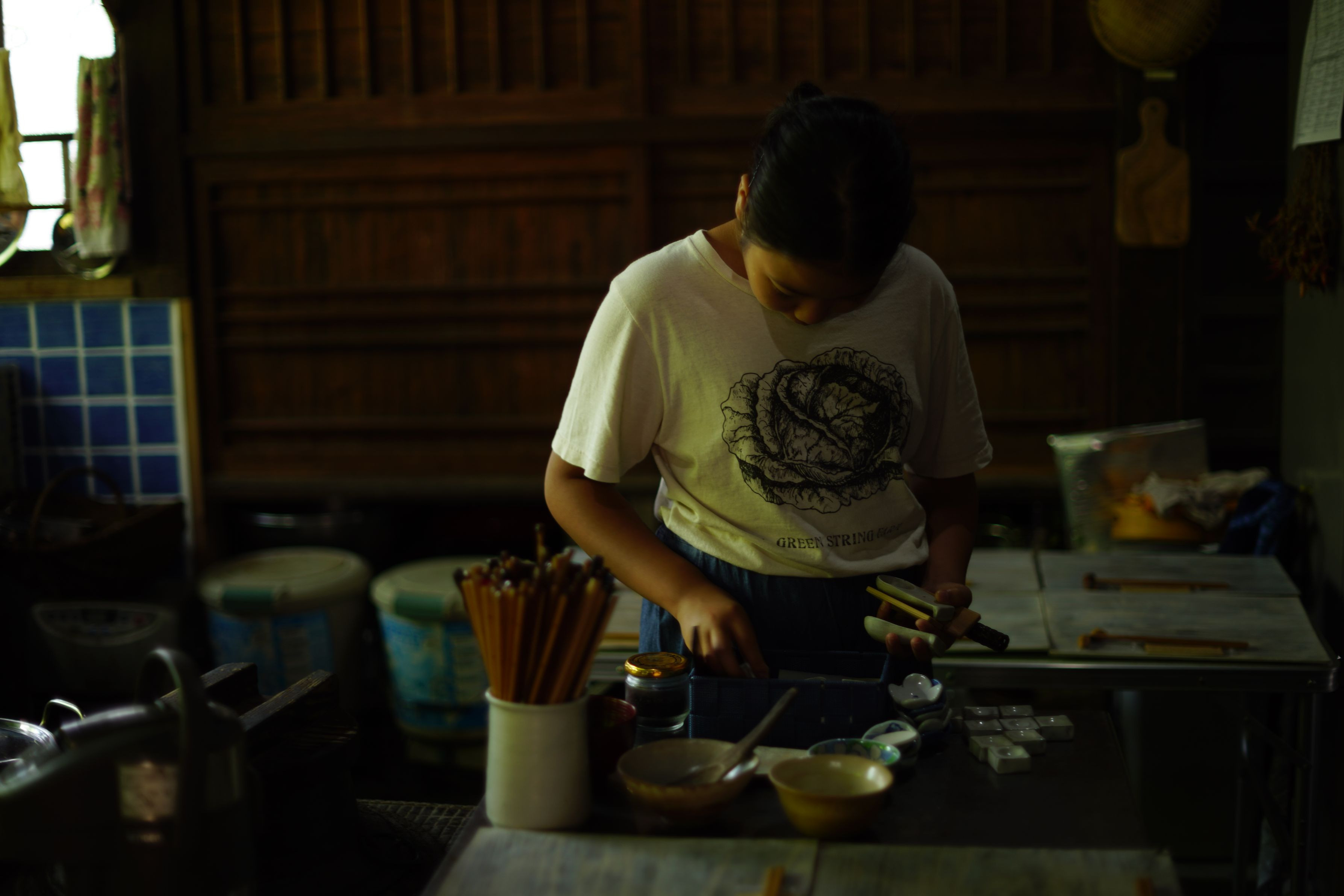 αアカデミー福岡天神校の野中元先生南阿蘇写真撮影講座の中で、ご家族の料理風景の一コマです。一度は立ち寄って戴きたい南阿蘇大自然の中にある古民家の中です。