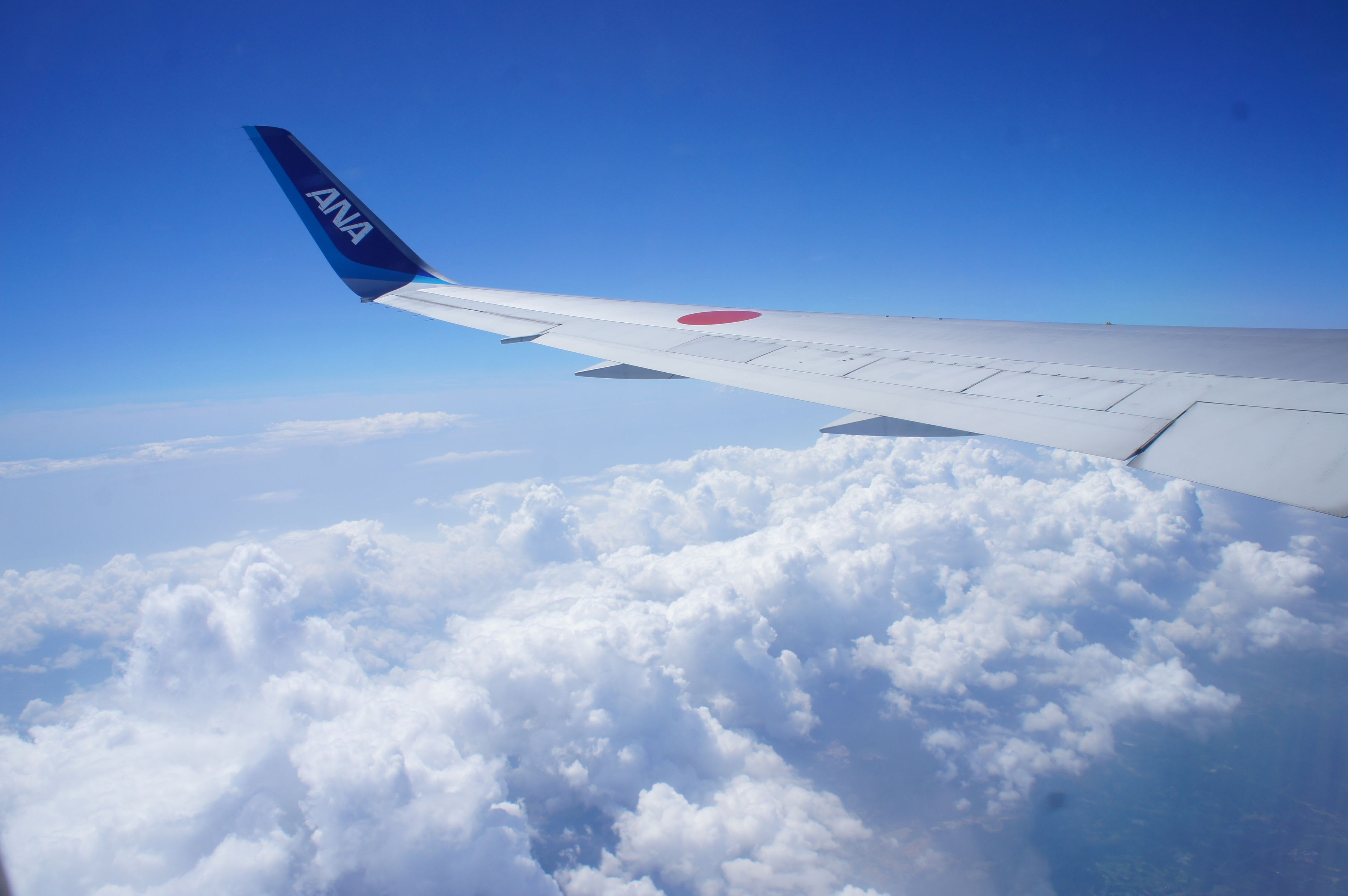 夏の空って感じじゃないですか?このもくもくした雲。 地上では雨が降っていたけど、雲の上は快適! 飛行機が大好きなので、乗るとやたらと写真撮影してます。 国際線は、高度が高いところを長く飛ぶので楽しいですね♪