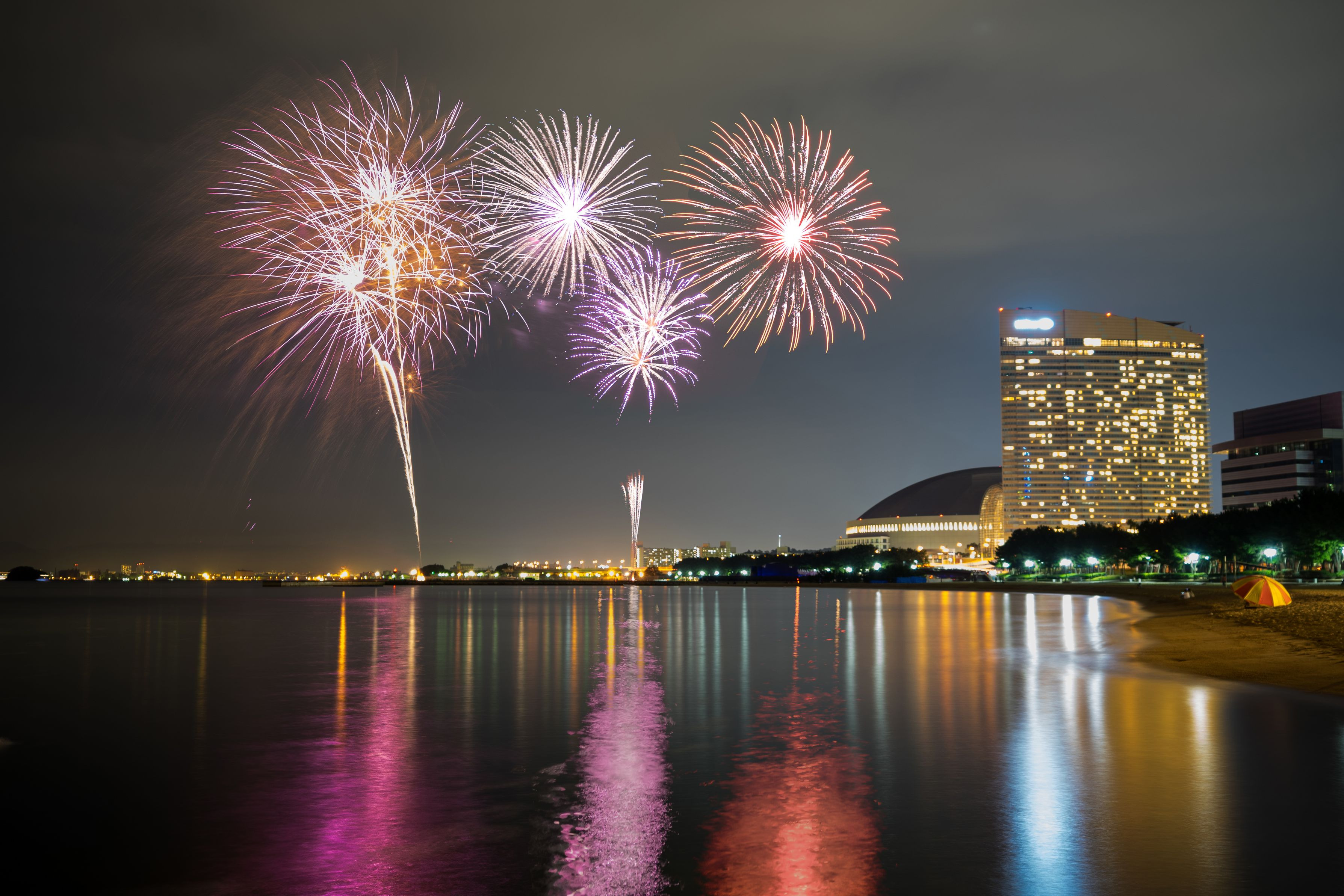 近くの浜辺で フェスティバルの終わりに花火が上がりました もう一回、練習出来ると、駆けつけたときは終盤でした(^_^;)