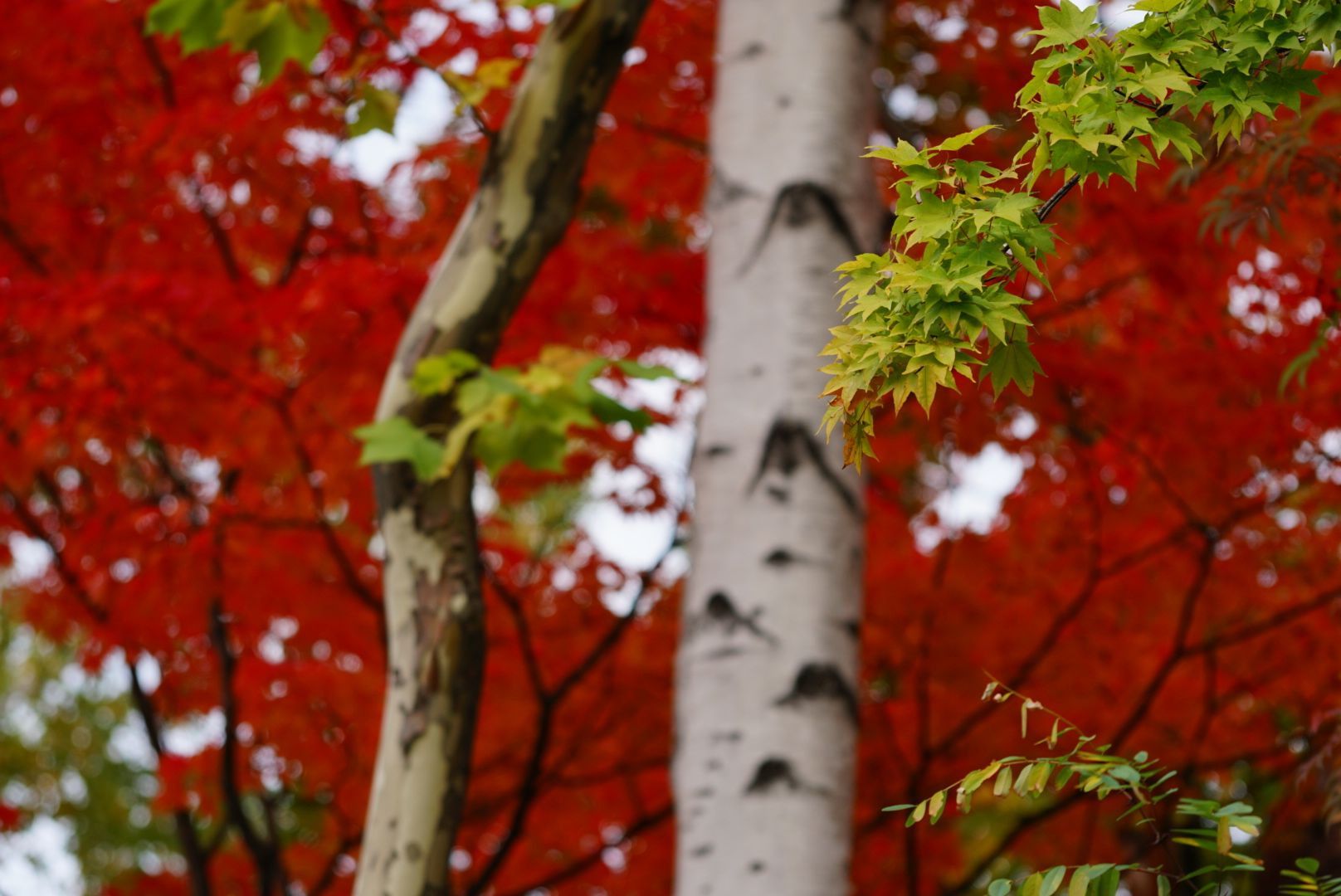 白樺の白 椛の赤 北国独特の紅白の秋