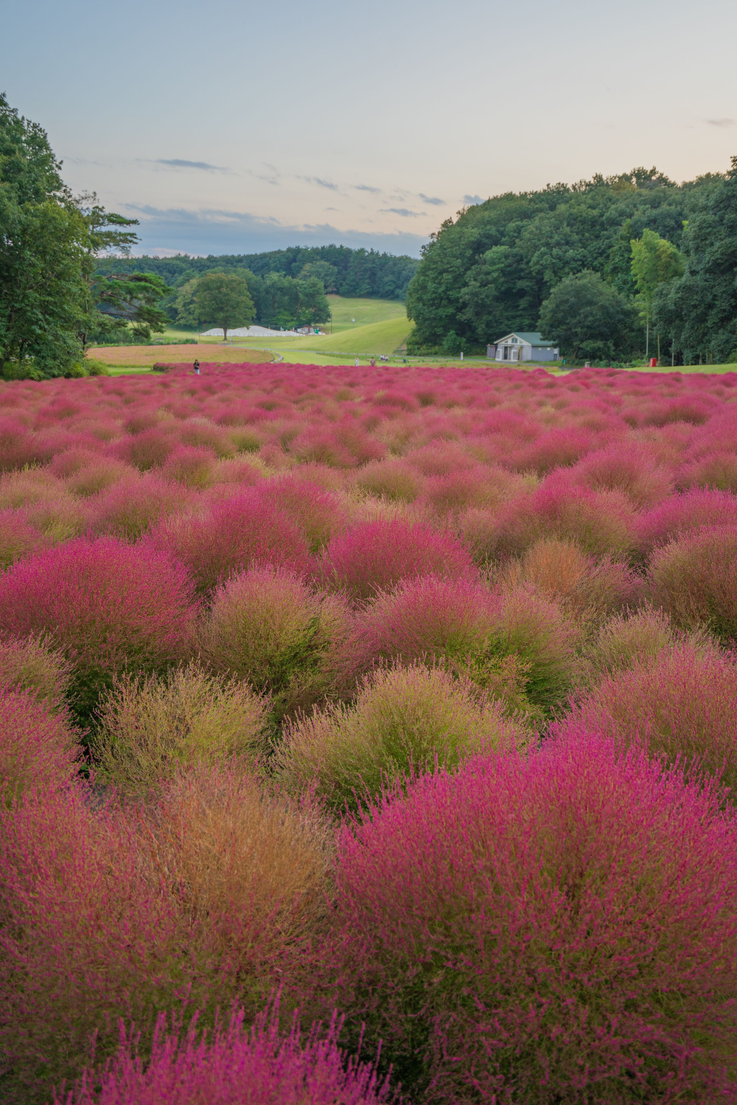 森林公園のコキアが色付き始めました。