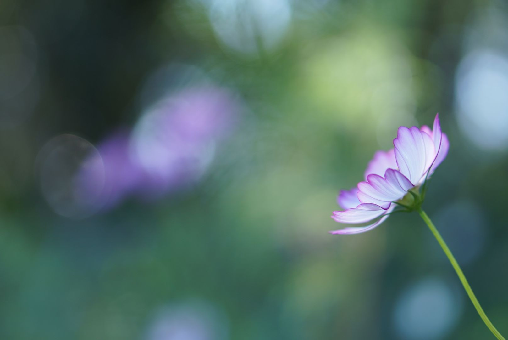 日陰に咲くコスモスに光を集めてみるとドリーミーに。