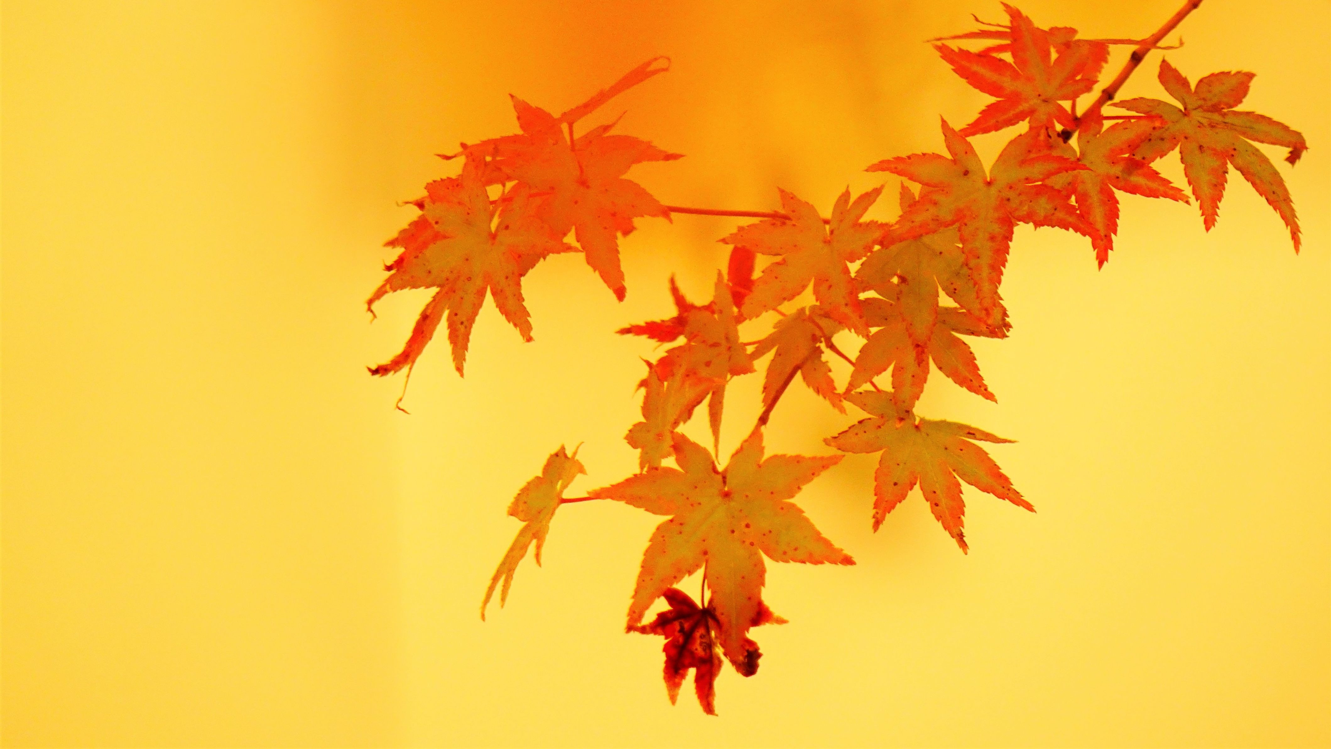 RX10Ⅳとα9を触りに梅田まで。 hiltonplazawest地下に色づいた紅葉が植栽されていて 思わず撮りました。背景は光が当たる白いビルの壁です。