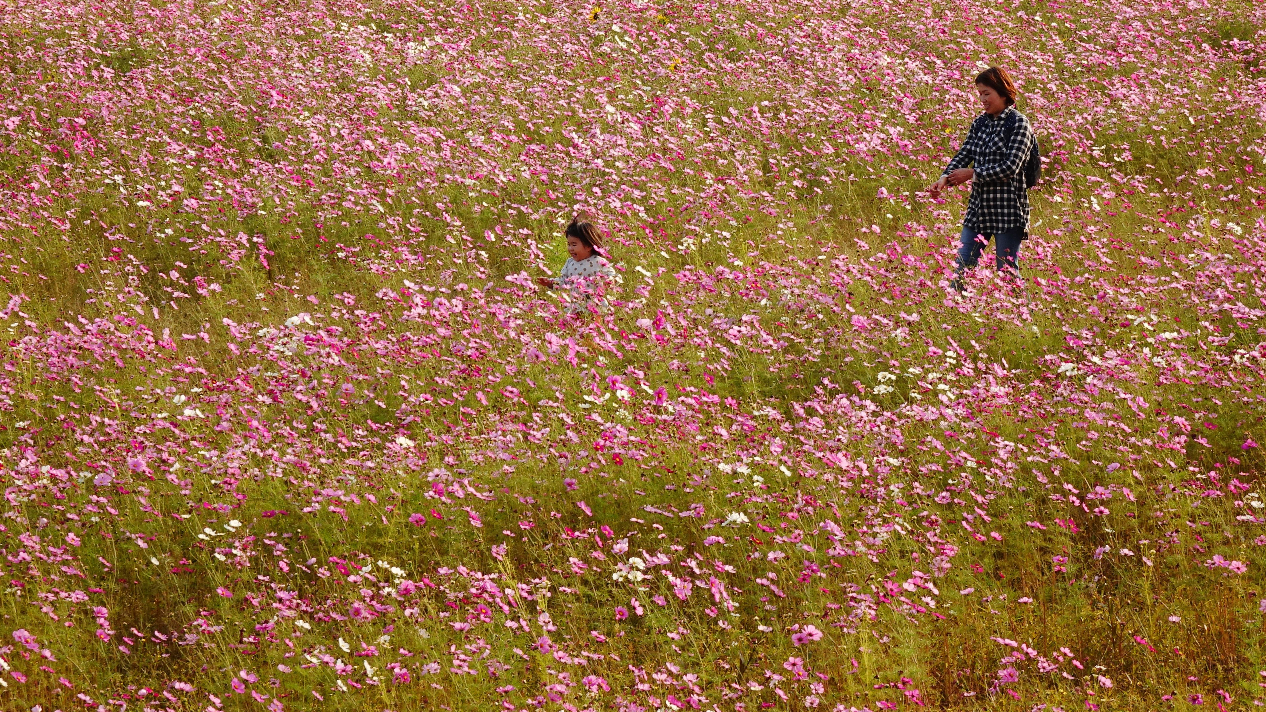 コスモスの花の中で