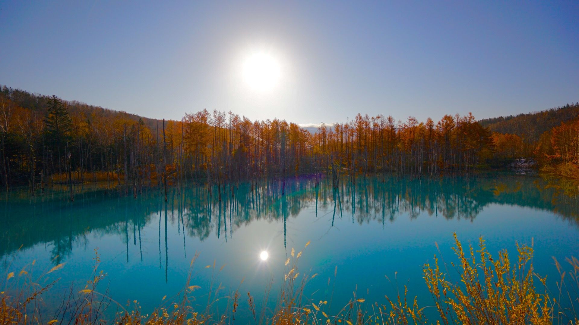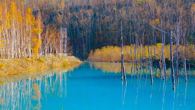 晩秋の青い池