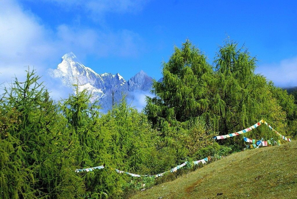 中国の成都から九寨溝へ旅行を計画しましたが、地震のために閉鎖されました。急遽、計画を変更し、成都から国道303号線沿いの名所へ旅行しました。 3、成都と丹巴の中間にある四姑娘山の麓には多くのハイキングコースが有ります。3日滞在したのですが天気が良かったのは半日だけでした。晴れた時に撮れた四姑娘山の写真です。