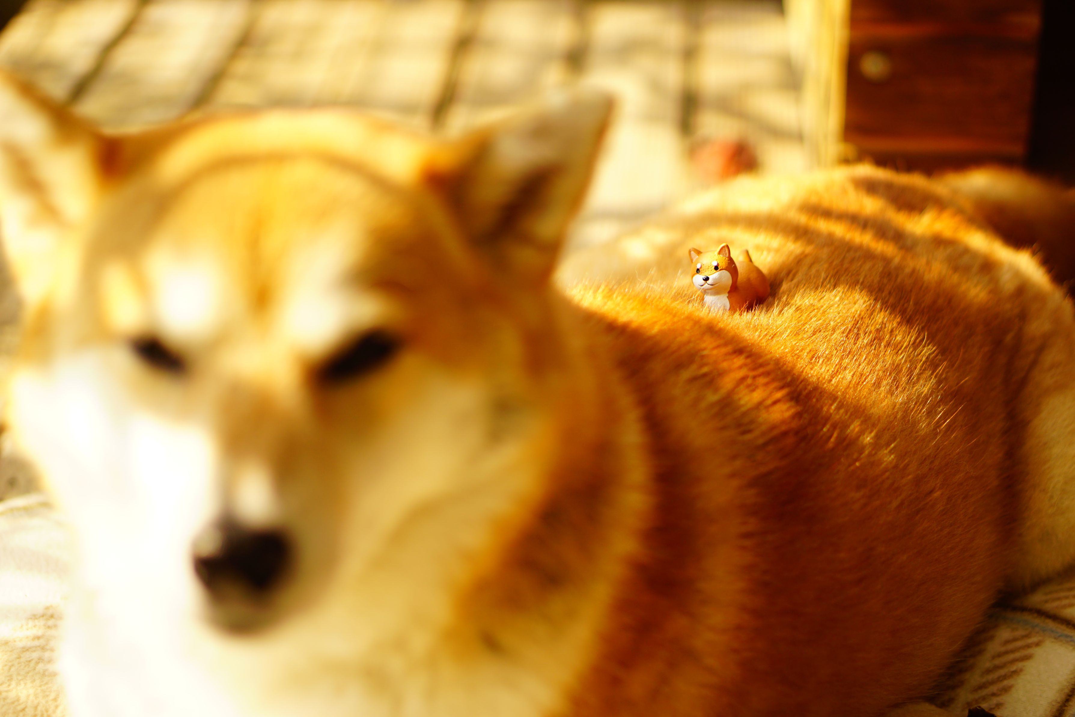 柴犬の上にフギュア(柴犬)を乗せてみました♡