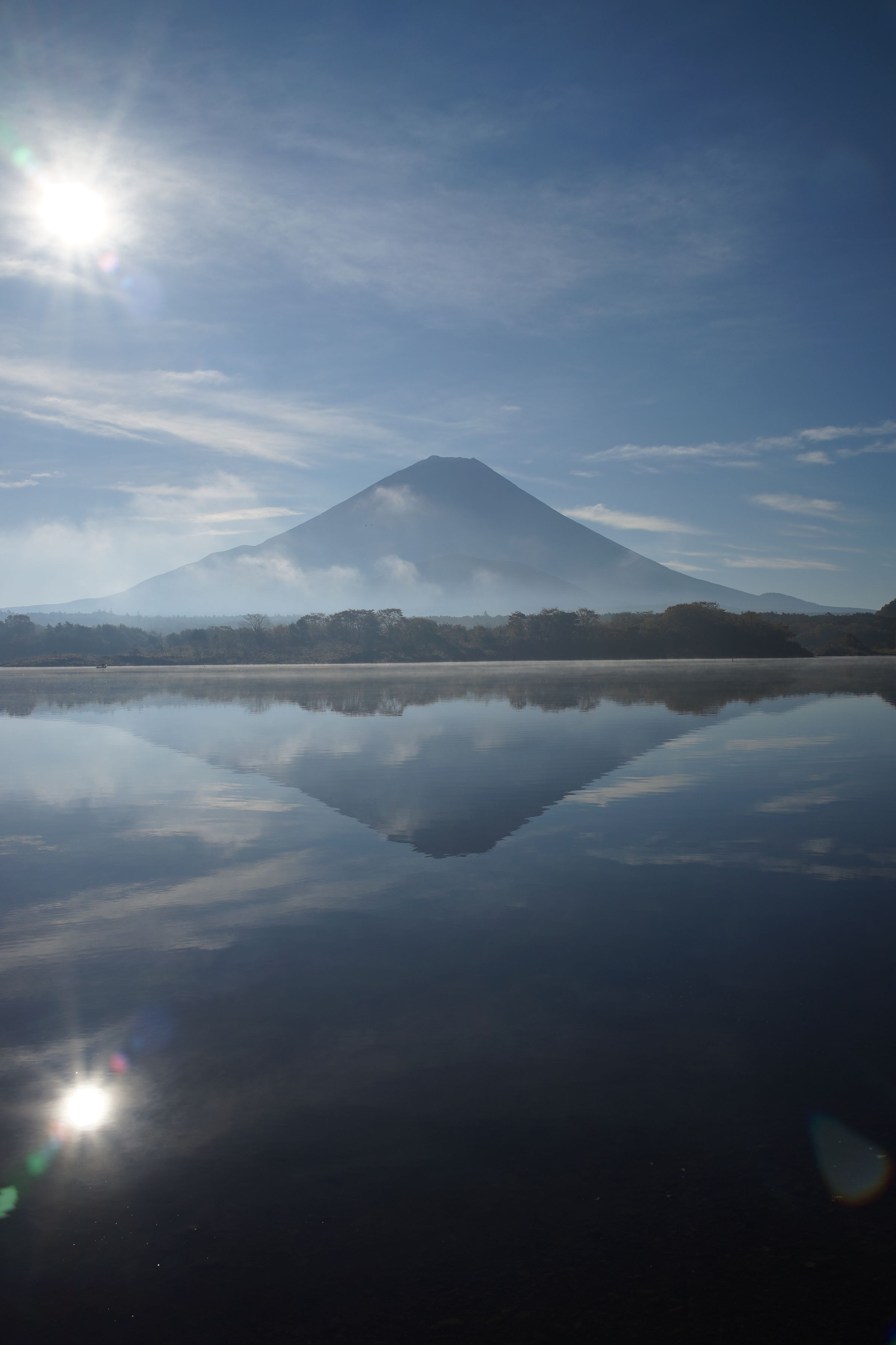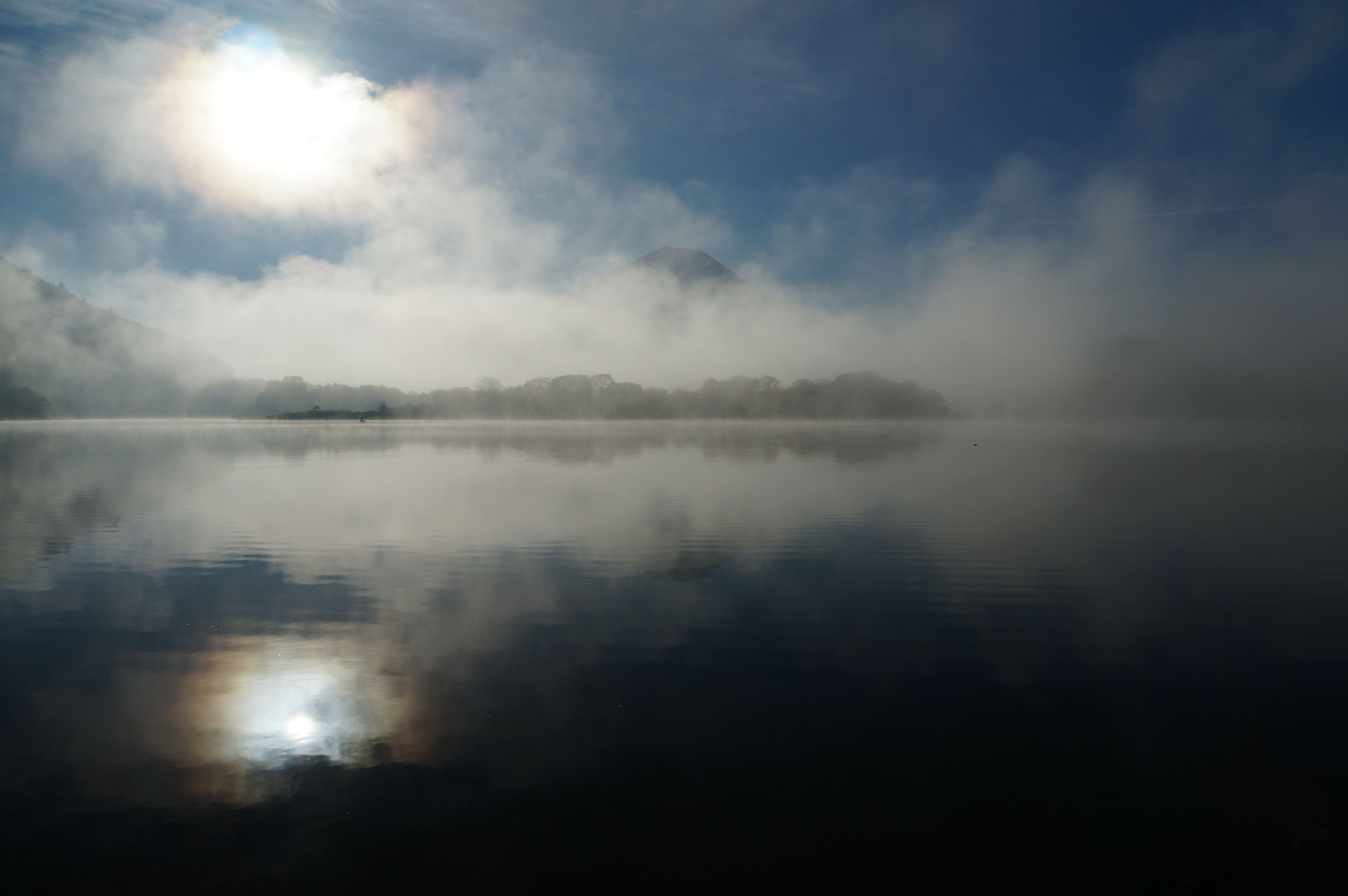 年末の下見で訪れました。 精進湖だけ霞んでいて。不思議な感じ。風がなかったからでしょうか。