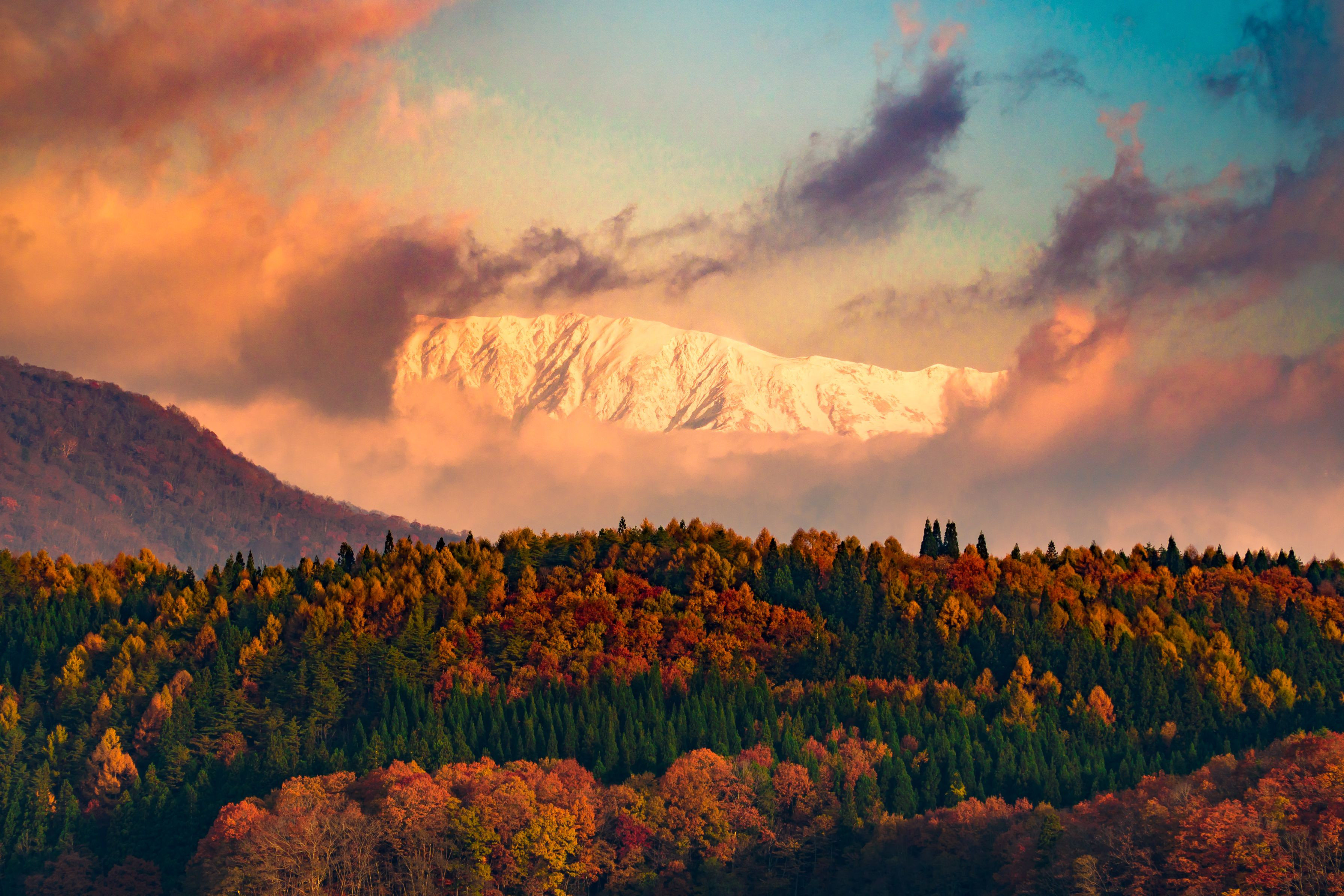 白馬村に宿泊した際に青木湖の紅葉を見てきました。 前日の雨の影響で山々には雲がかかっていて思っていた絵は 撮れませんでしたが、ちらっと顔を覗いた際に一枚撮影しました^^;