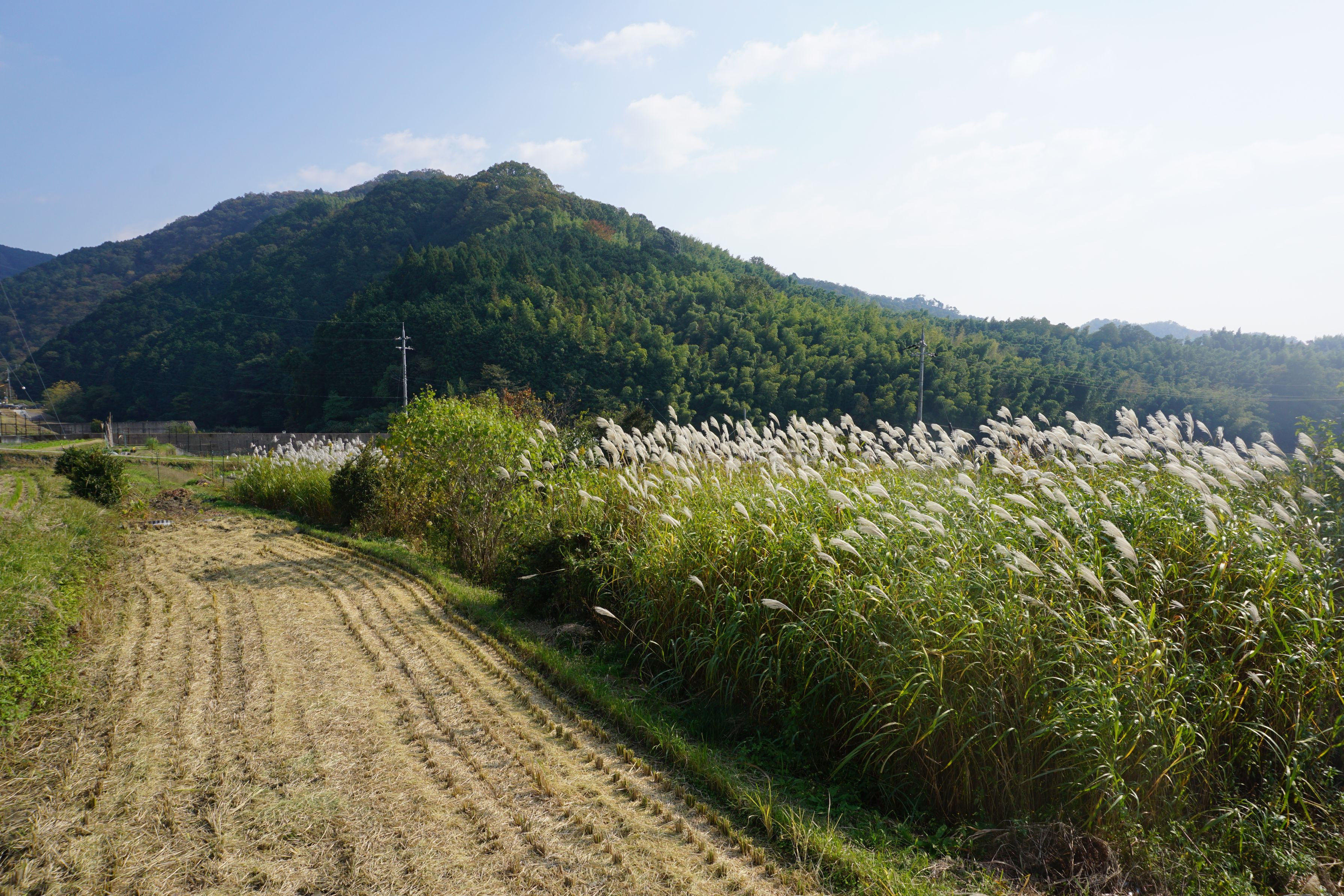 ほとんどの田んぼで稲刈りが終わっています。自分の背丈より高いススキが風にゆれていました。