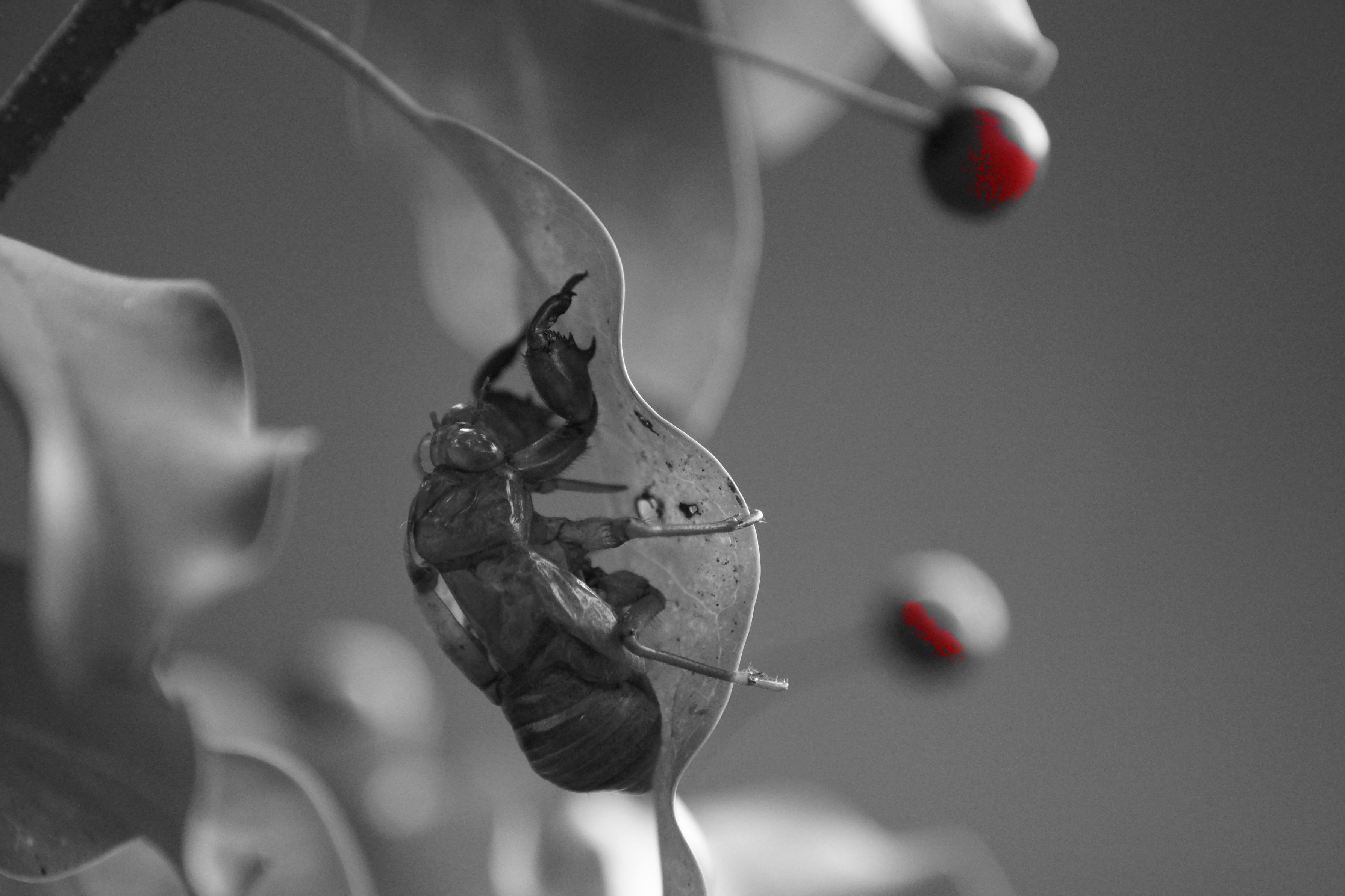 紅葉の撮影に来たらまだ蝉の抜け殻が残ってたので思わすカシャ