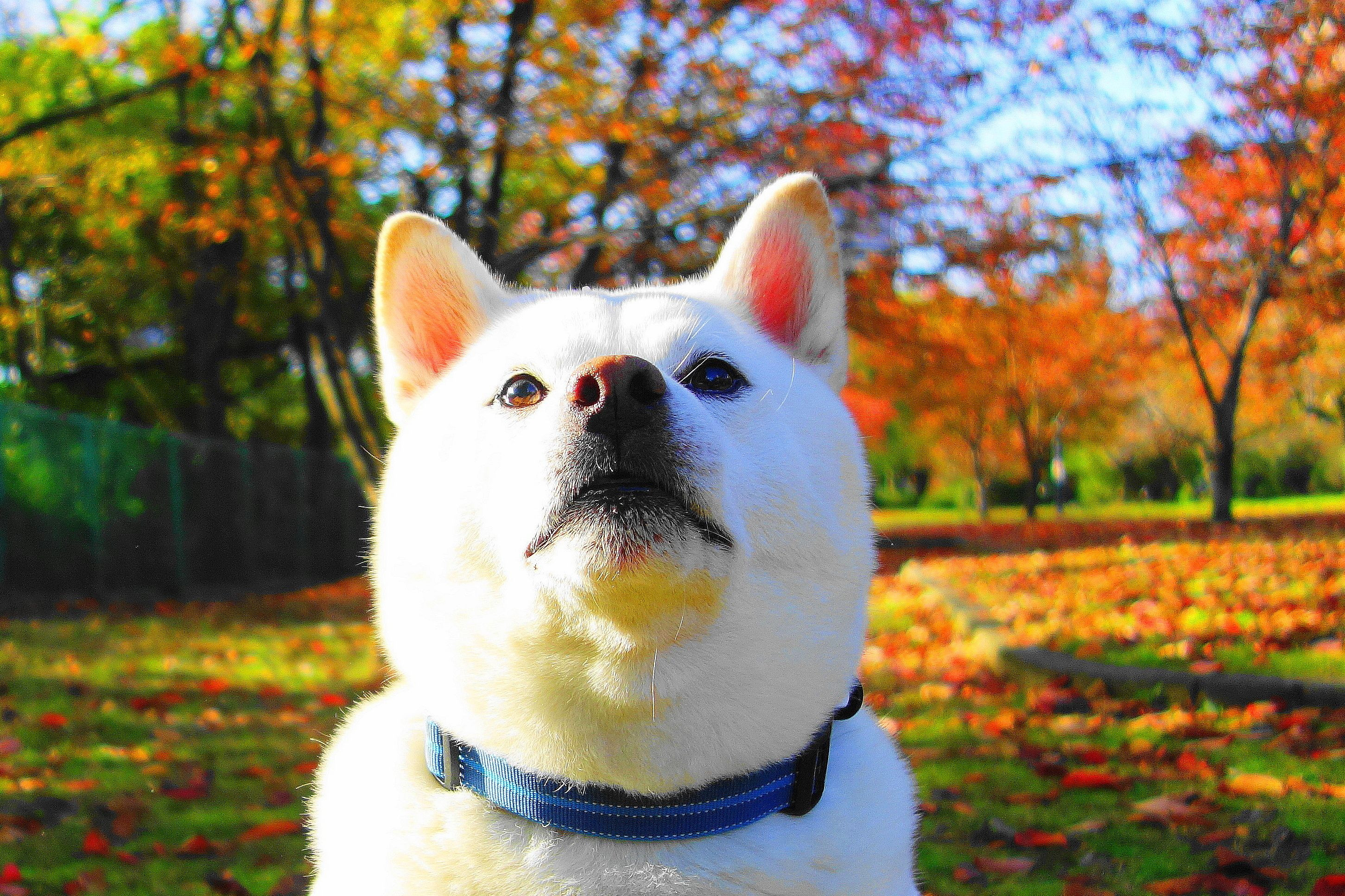 製品情報>My Sony>αcafe>真っ赤だね! 蘭丸!紅葉を楽しむ~(^_-)-☆(白柴 蘭丸さん)