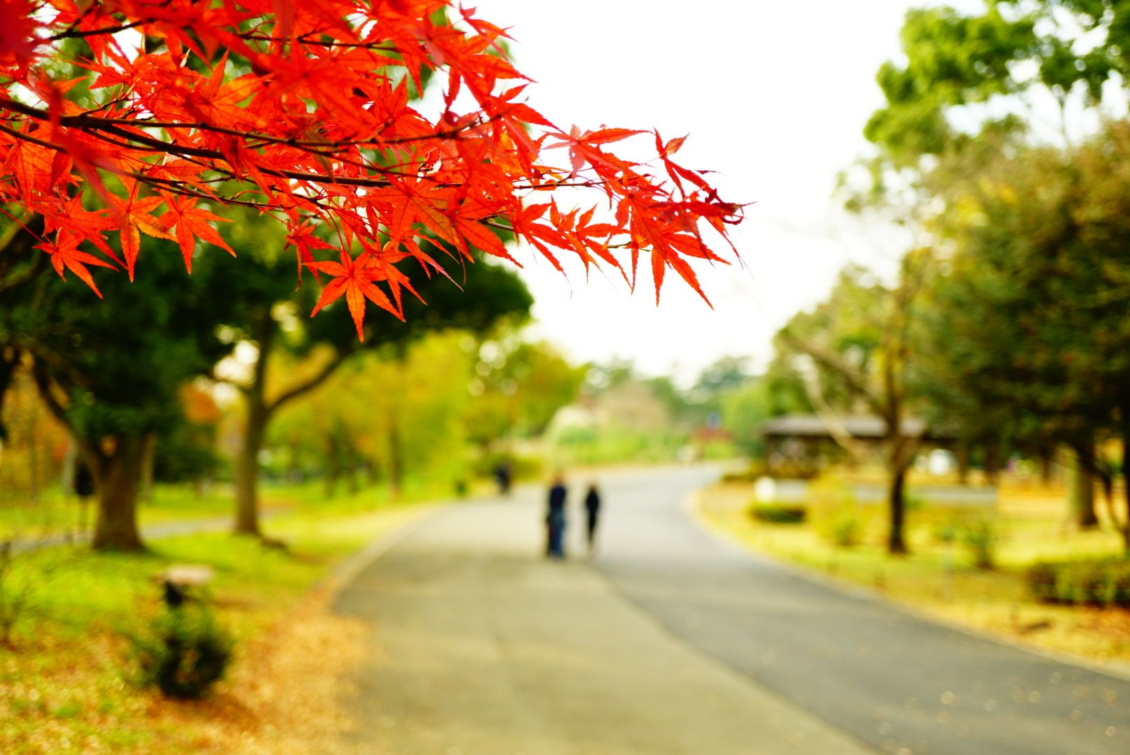 公園の紅葉が綺麗だったのでそれにフォーカスして背景の小道を撮ってみました。