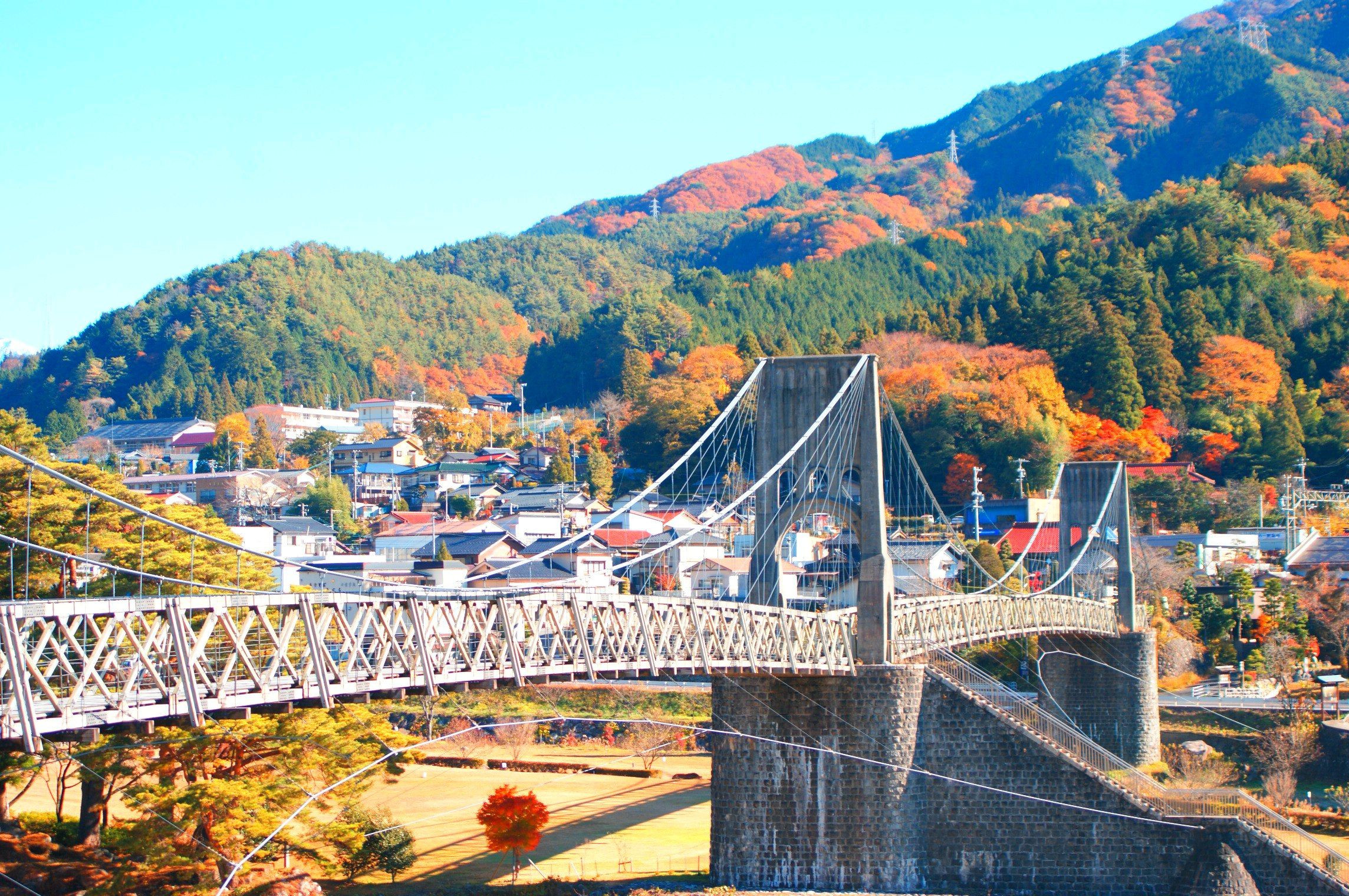製品情報>My Sony>αcafe>信州の秋、 桃介橋と、秋色燃ゆる山々、(8マンさん)