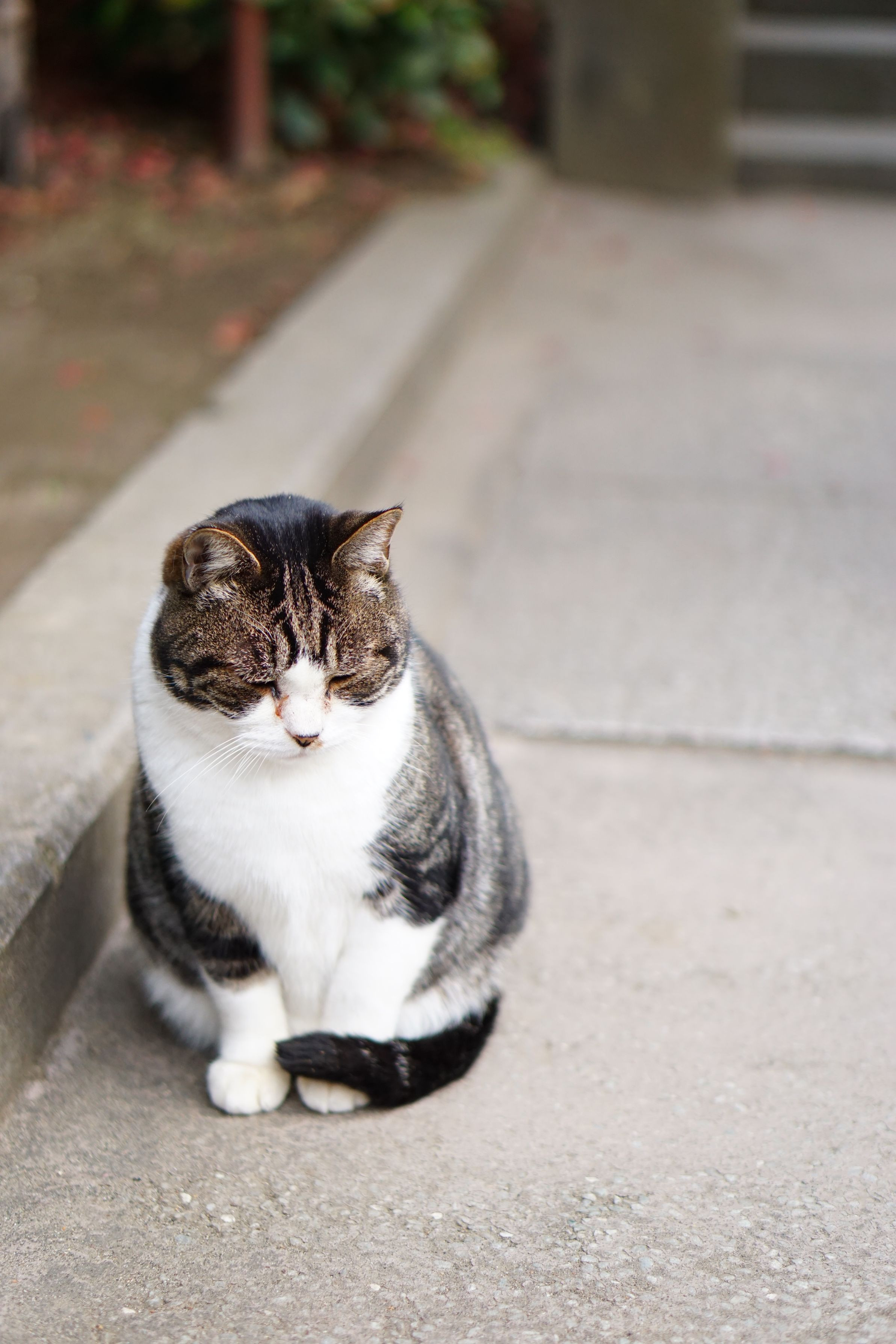 人がにぎわう円覚寺の門前で、 ただただじっとしているネコ。