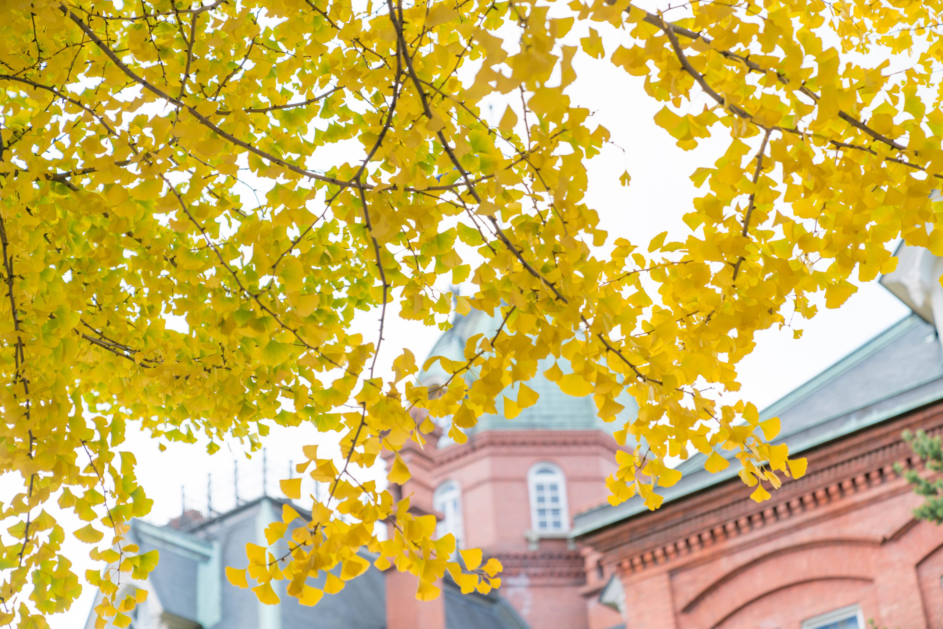 もみじ、銀杏の葉が落ち冬の初めの旧道庁です。