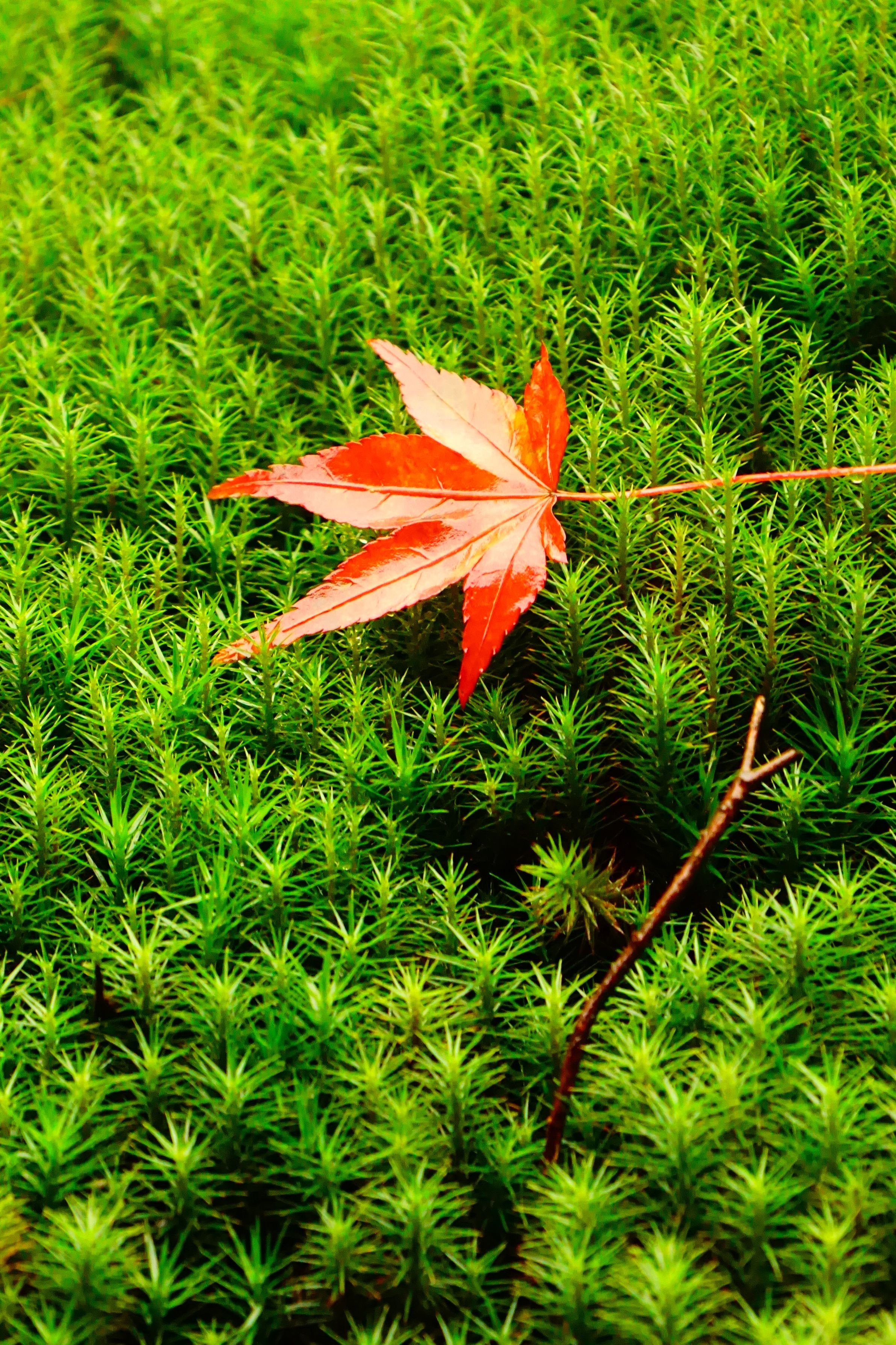 「くれない」 苔の上の紅葉。きれいでした!