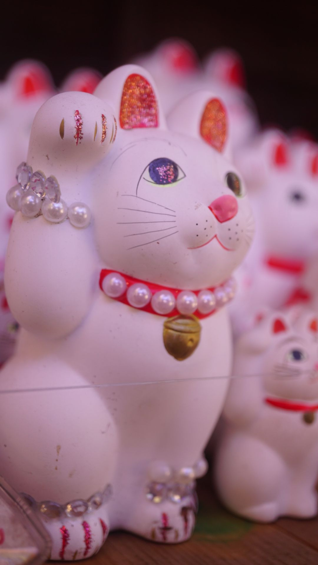 左右に棚があって、大小様々な招き猫が帰ってきてました。