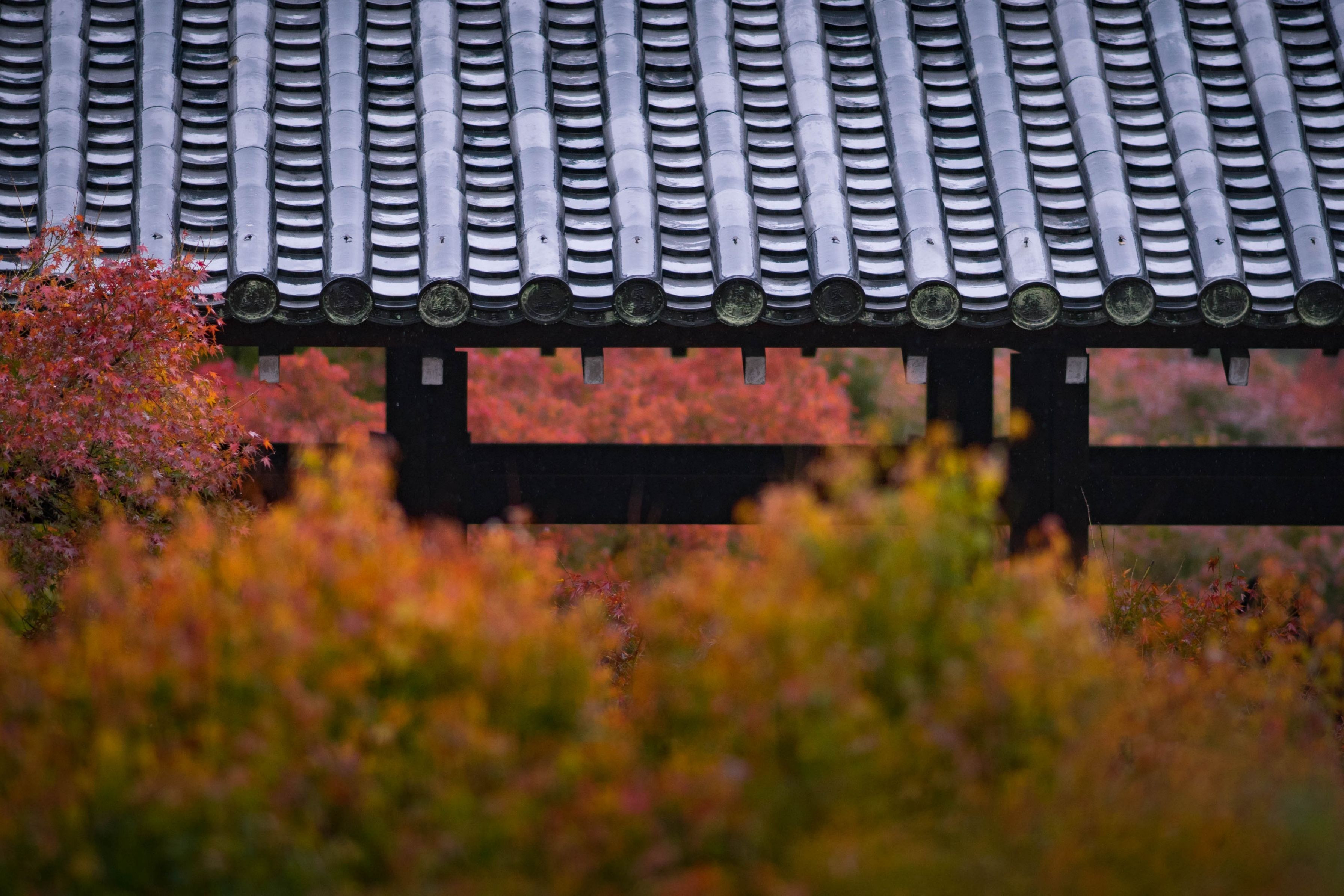 念願の京都の秋を撮ってきました。まずは朝一番、雨の東福寺。