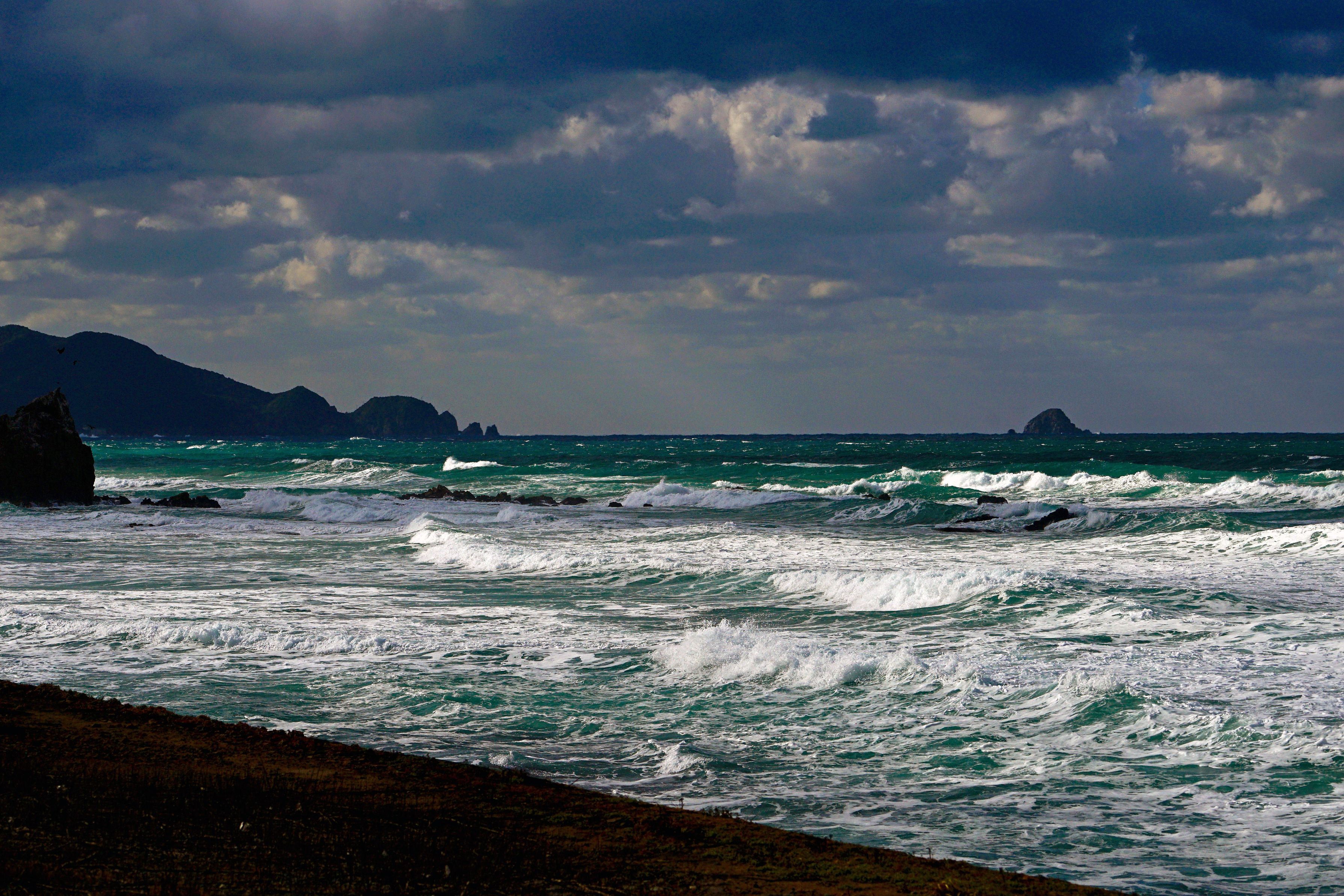 場所は山陰益田の海水浴場。冬、風が強いとすぐに荒れる。