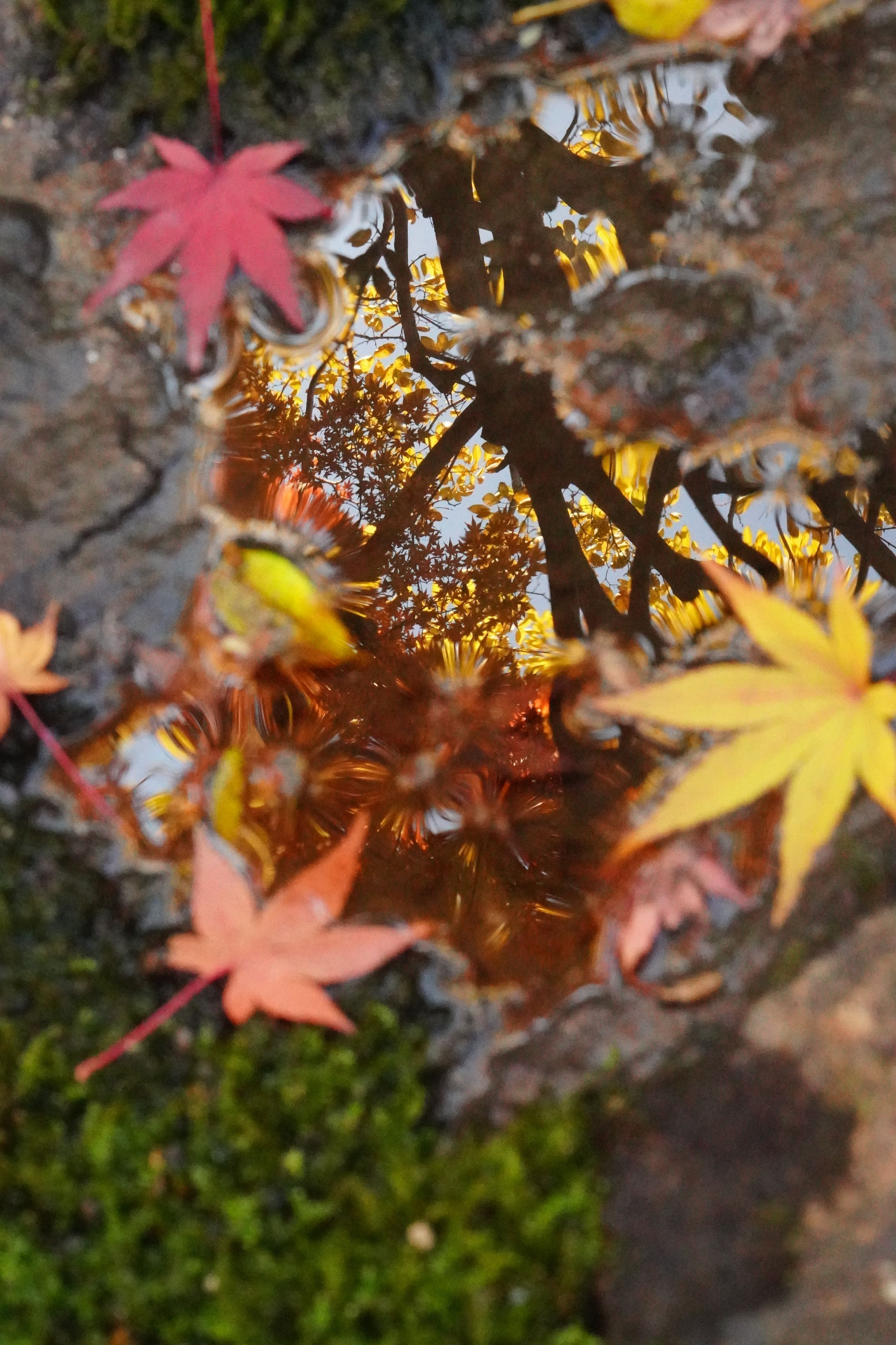 水たまりに写り込んだ紅葉が綺麗でした!