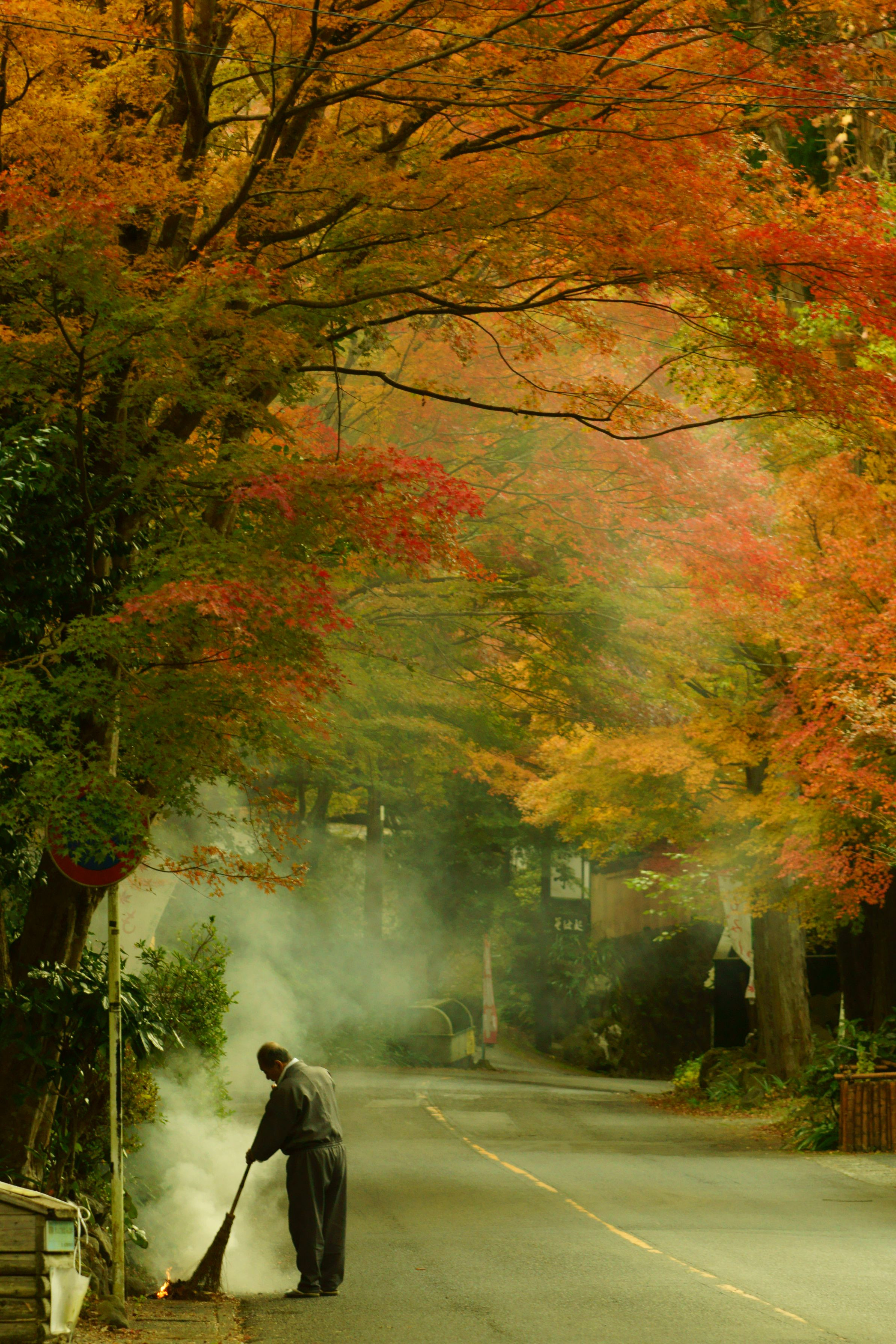 昔はどこの町内でも落ち葉を掃き集め 落ち葉焚きをしていた