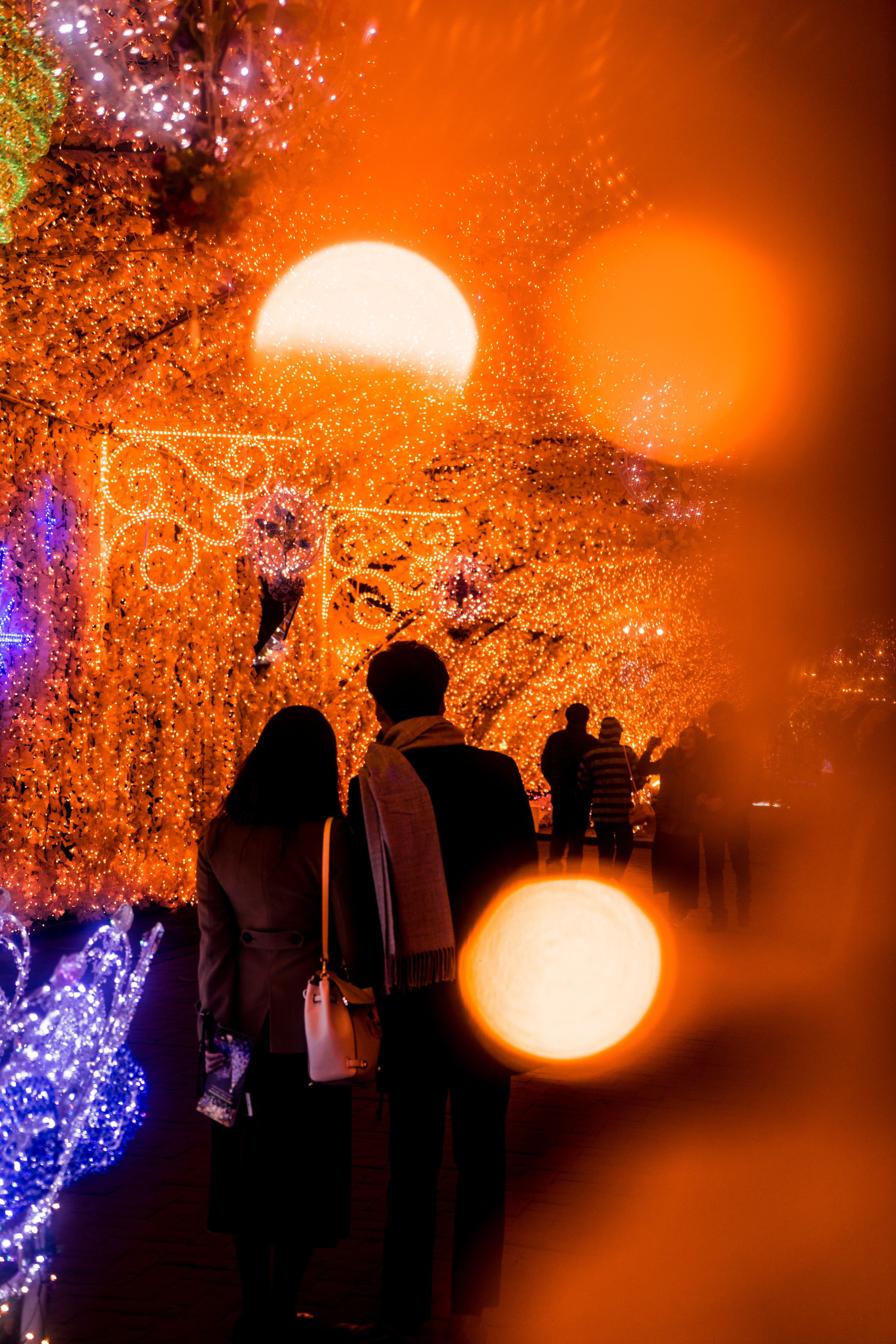 静岡県御殿場市 時之栖(ときのすみか)光のトンネルにて。 予想したより人が少なくて、いい被写体がなかなか見つからず。それでも何とか撮れました。フォギー (A)フィルターを使うことによって、少しばかり冷たい感じがするLEDを暖かい光に変えることができました。フォギーBを使って、もっと霧がかり感を強くしてもよかったかな。