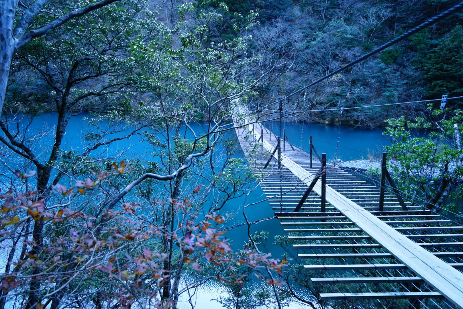 紅葉を見に行こうと思い、行ってみた寸又峡温泉の『夢の吊り橋』。 ただ、既に紅葉は終わっていたので、せめてダム湖だけでも撮影。