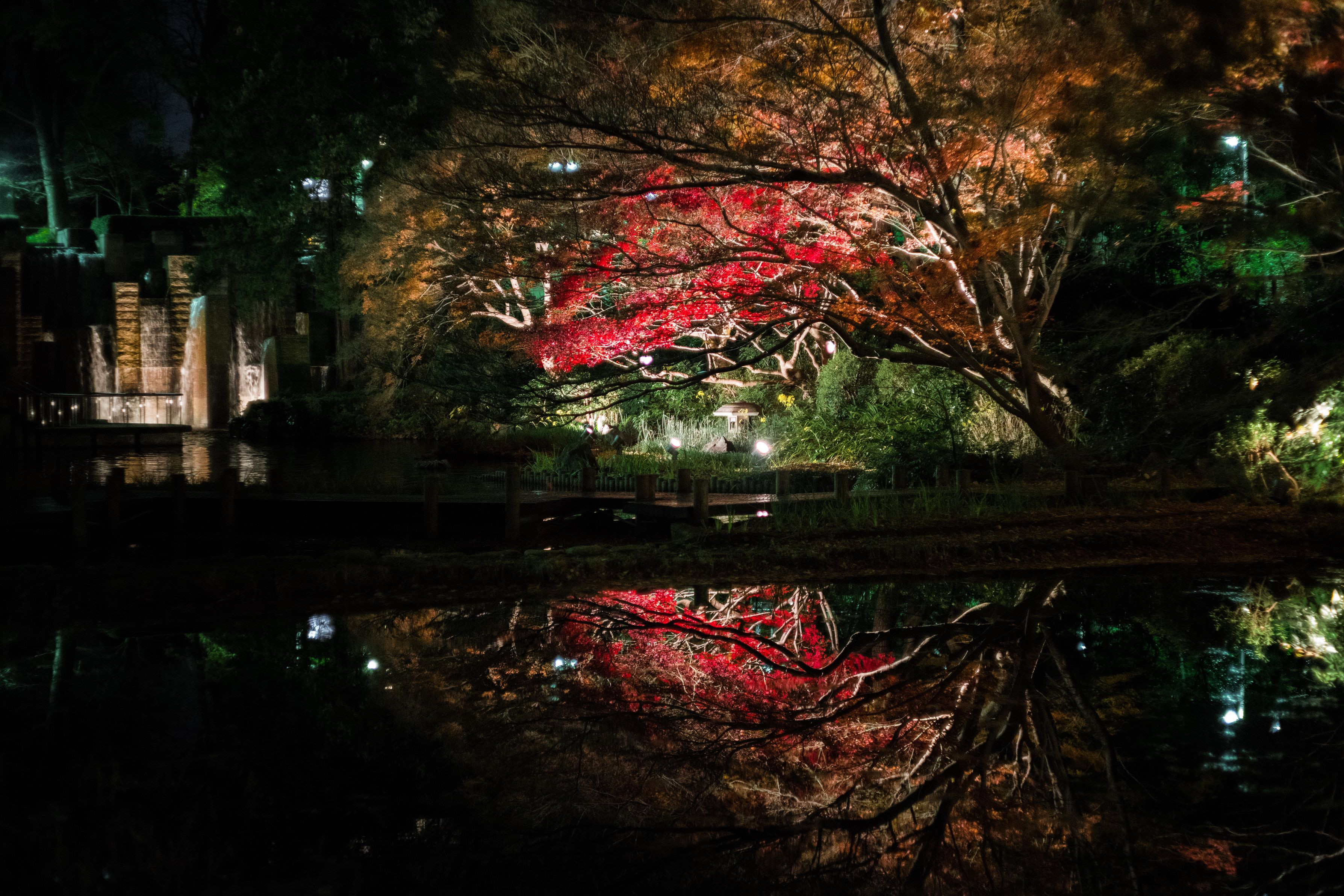 池に反射している紅葉を写しました。