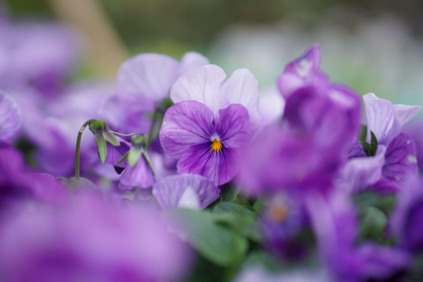 ガーデンへの植え込みを待っているパンジー 緊張しているかのようです。