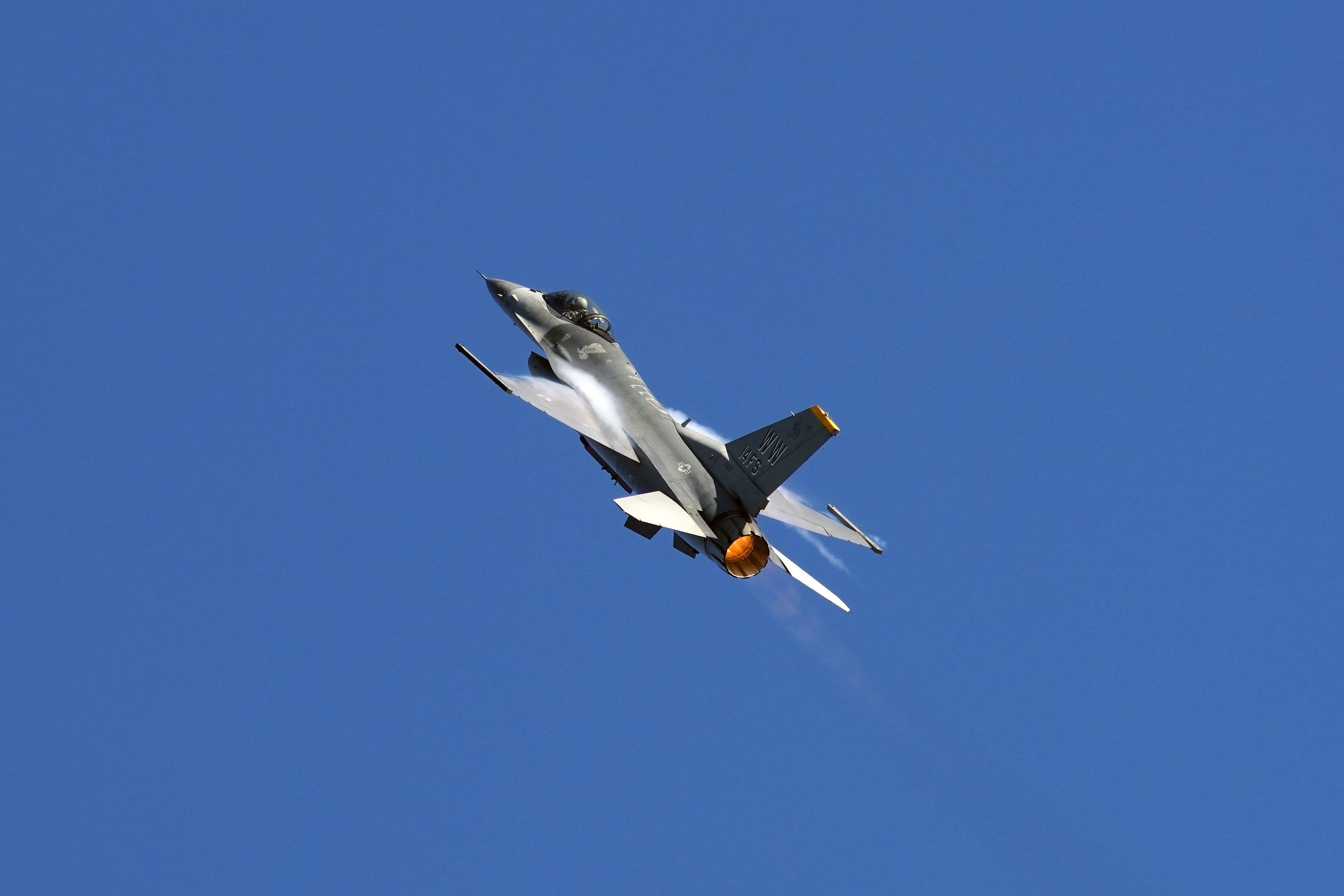 快晴時のPACAF F-16のデモは、show centerよりも端でハイレートを狙った方が良い気がしますが、300mmにX1.4のテレコンでは望遠が足りません。