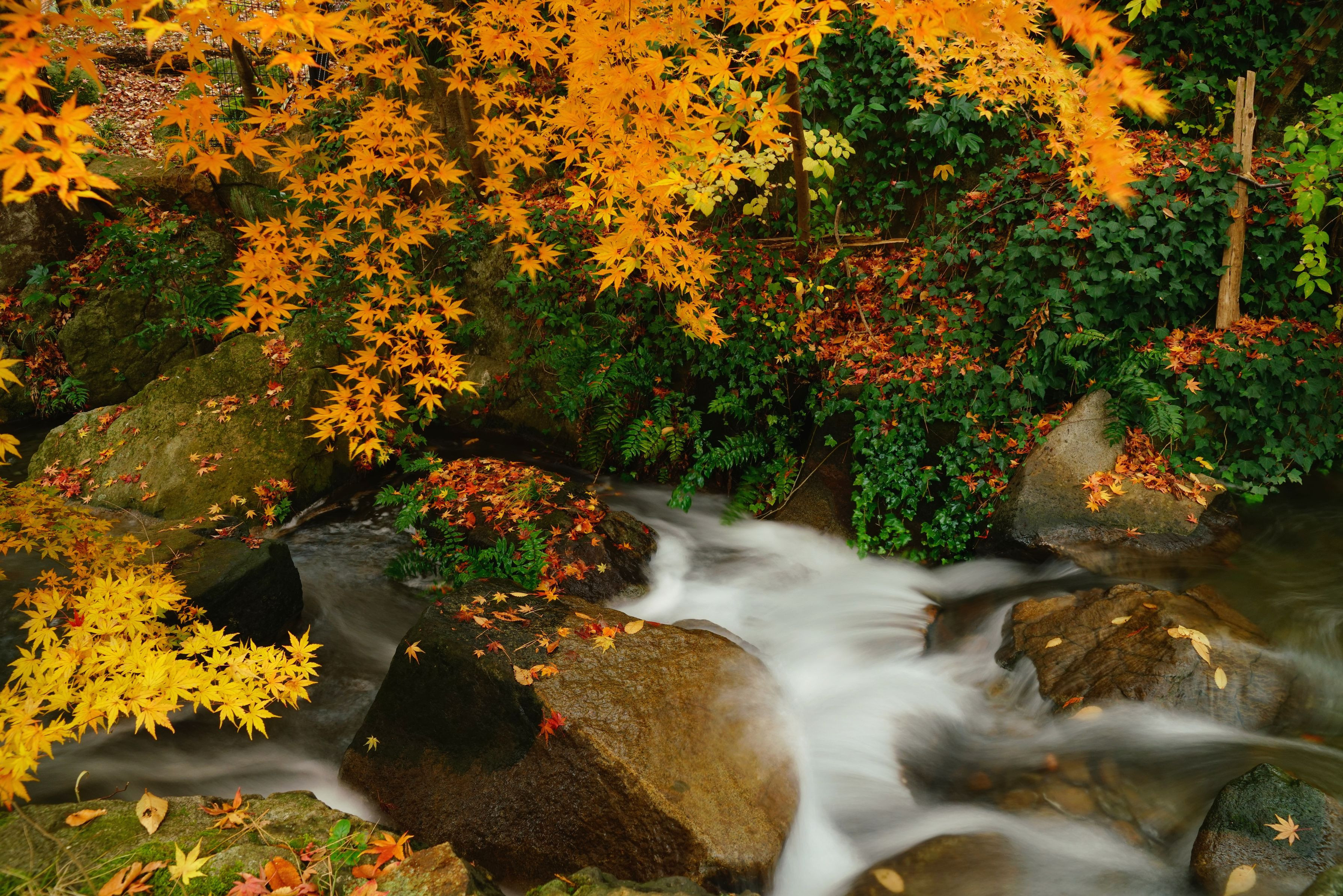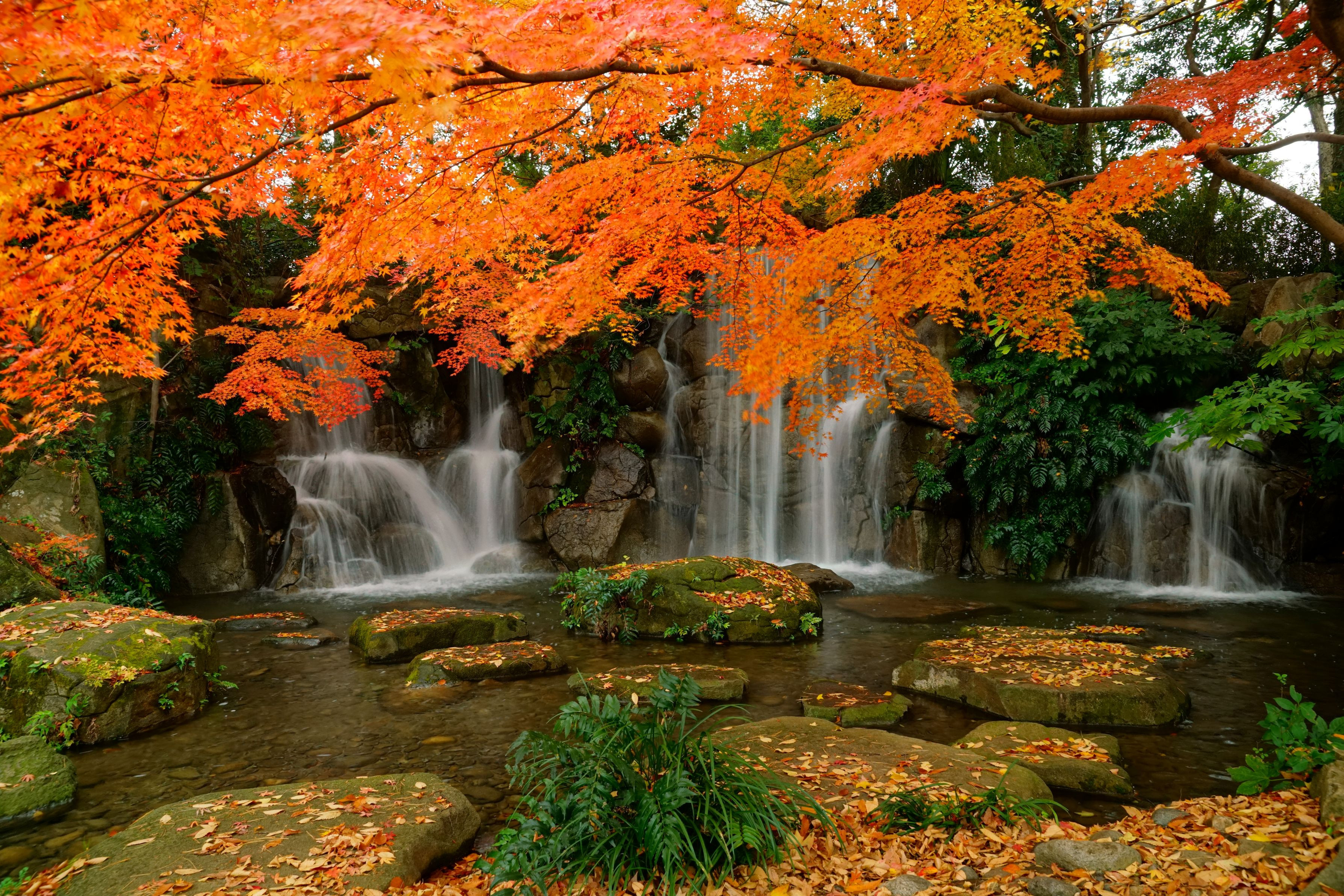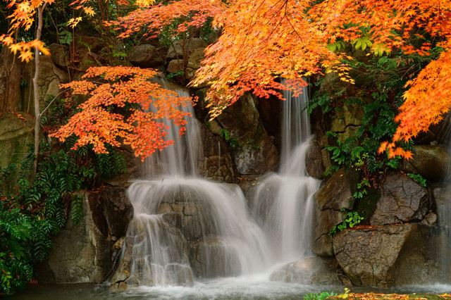 晩秋の園内・人工の滝付近の様子です。