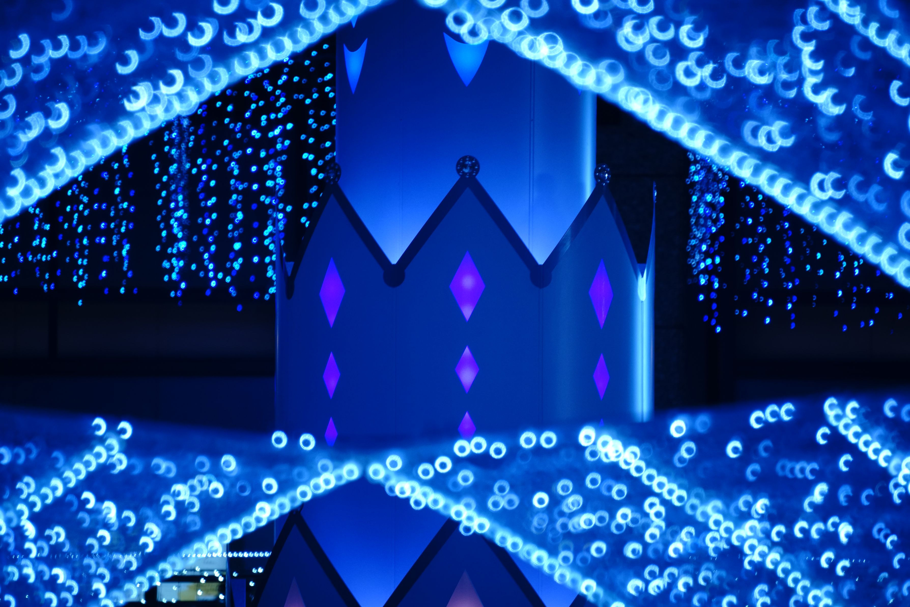 「流線形の前と後ろ」の後に同レンズでJR博多シティのイルミネーションをば。 ちょっとウルサ過ぎ?