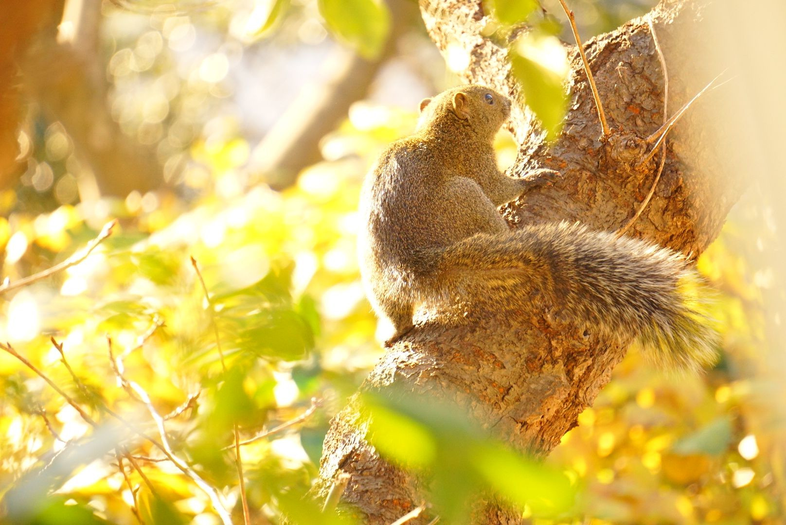 本日も新年早々、やって来ました! いつも変な鳴き声と共に現れ、颯爽と木から木へと飛んで行きます。