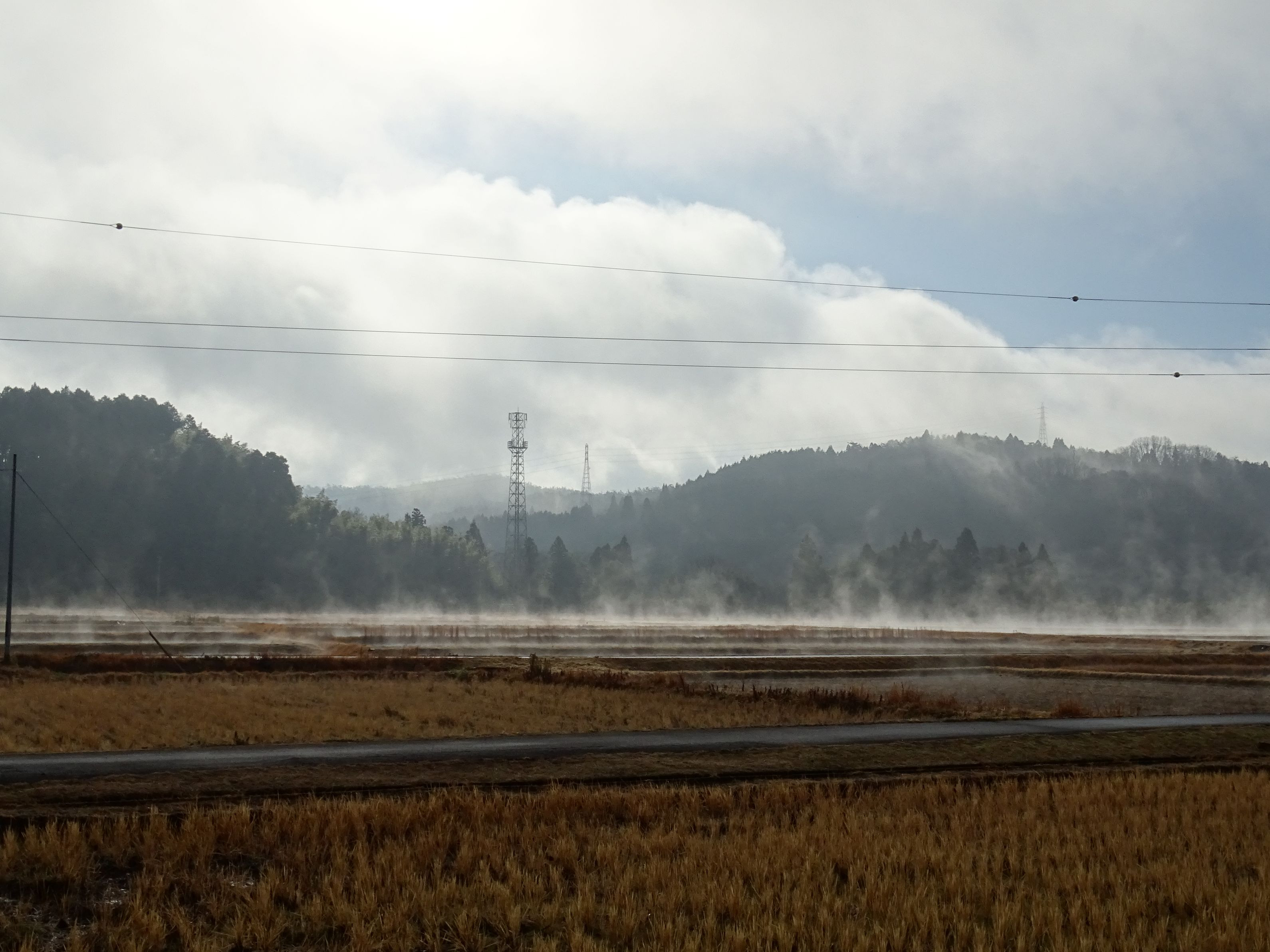 2018年は深い霧の中からやって来ました お隣の家(田舎なので隣が遠い)が見えない程の霧でした 霧が晴れて来たら、田んぼから水蒸気が立ちのぼる光景を初めて見ました