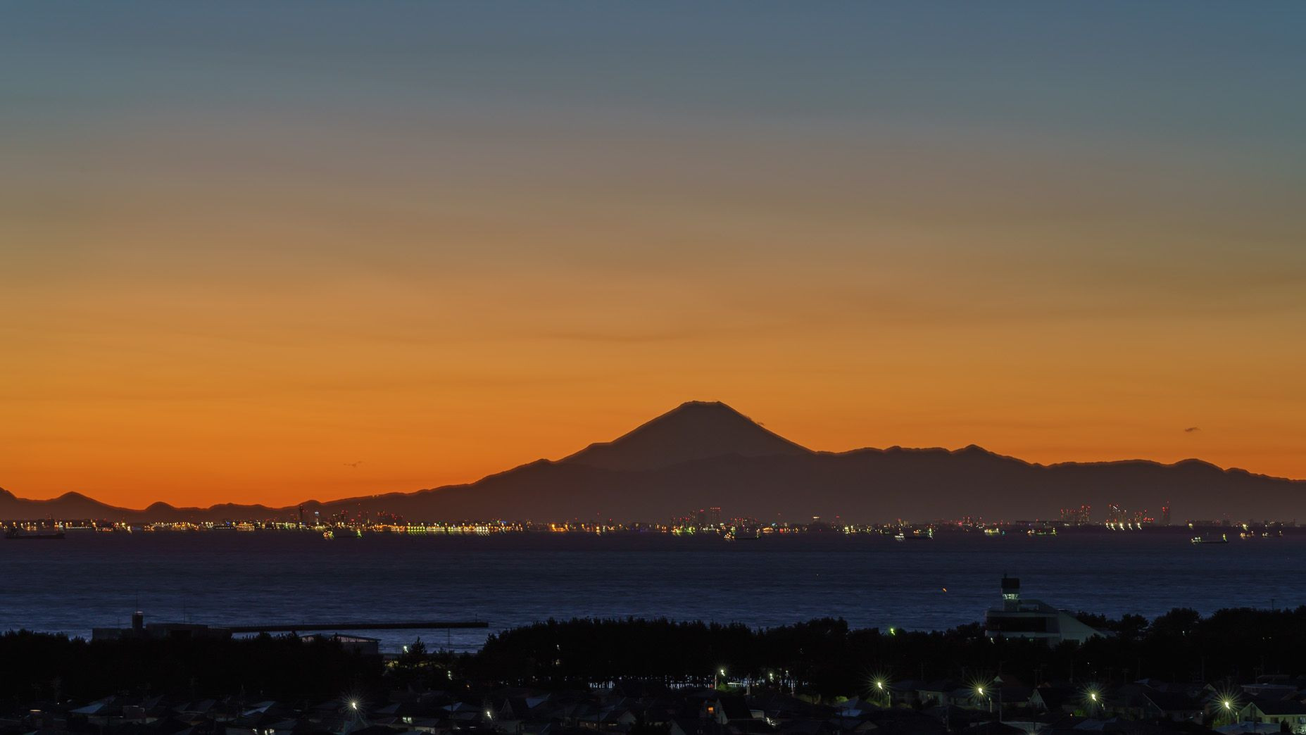 2018年1月3日 幕張メッセ近郊からの富士山の夕暮れの夜景です。