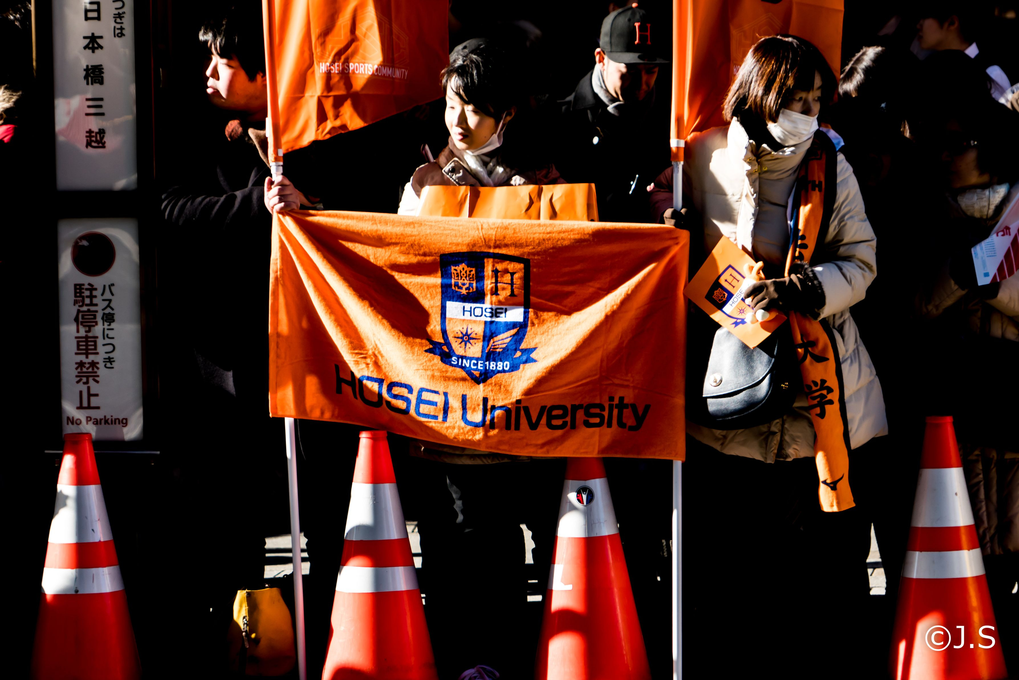 日本橋前にて。法政大学の応援団の旗が印象的でした。